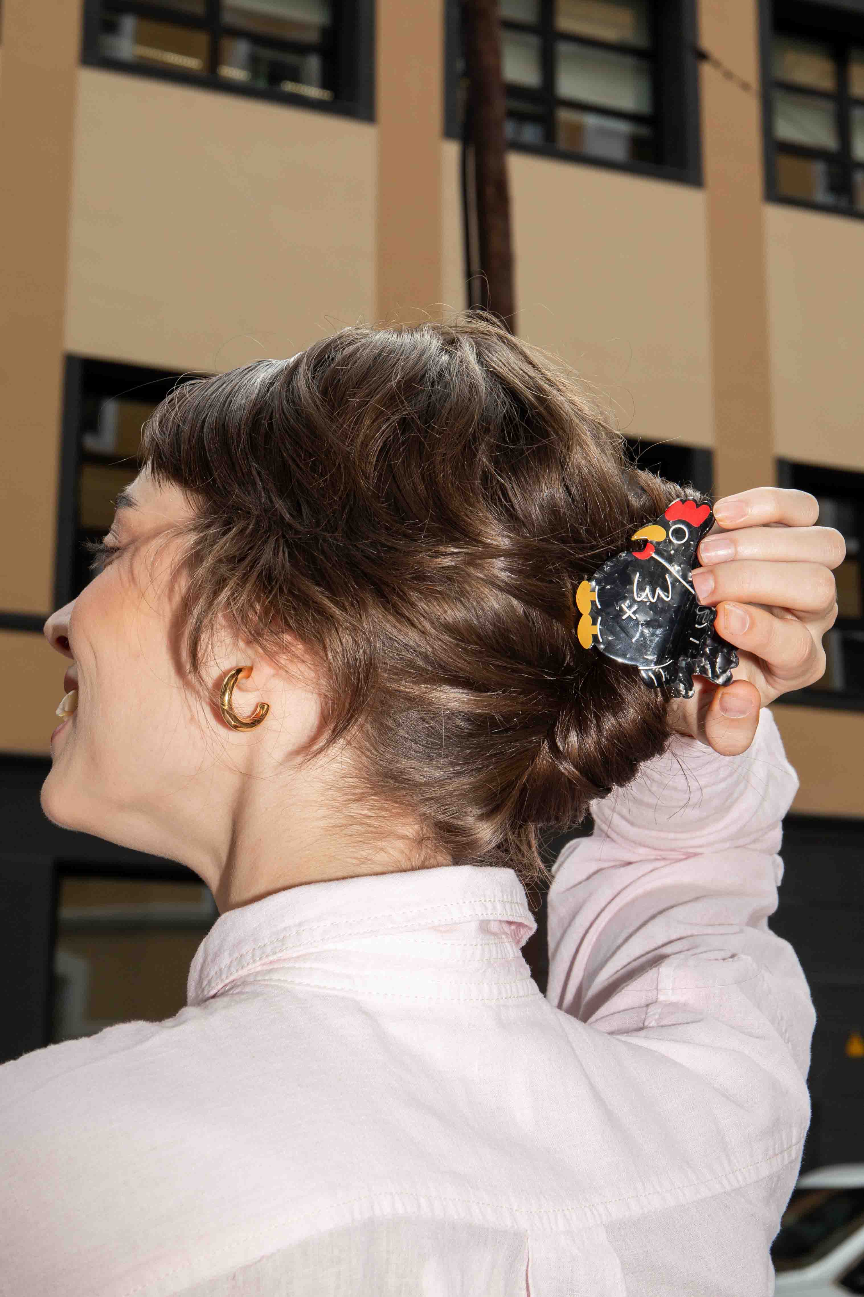 Chicken - Haarspange Huhn-Form, schwarz, Bio-Kunststoff (Cellulose Acetat)