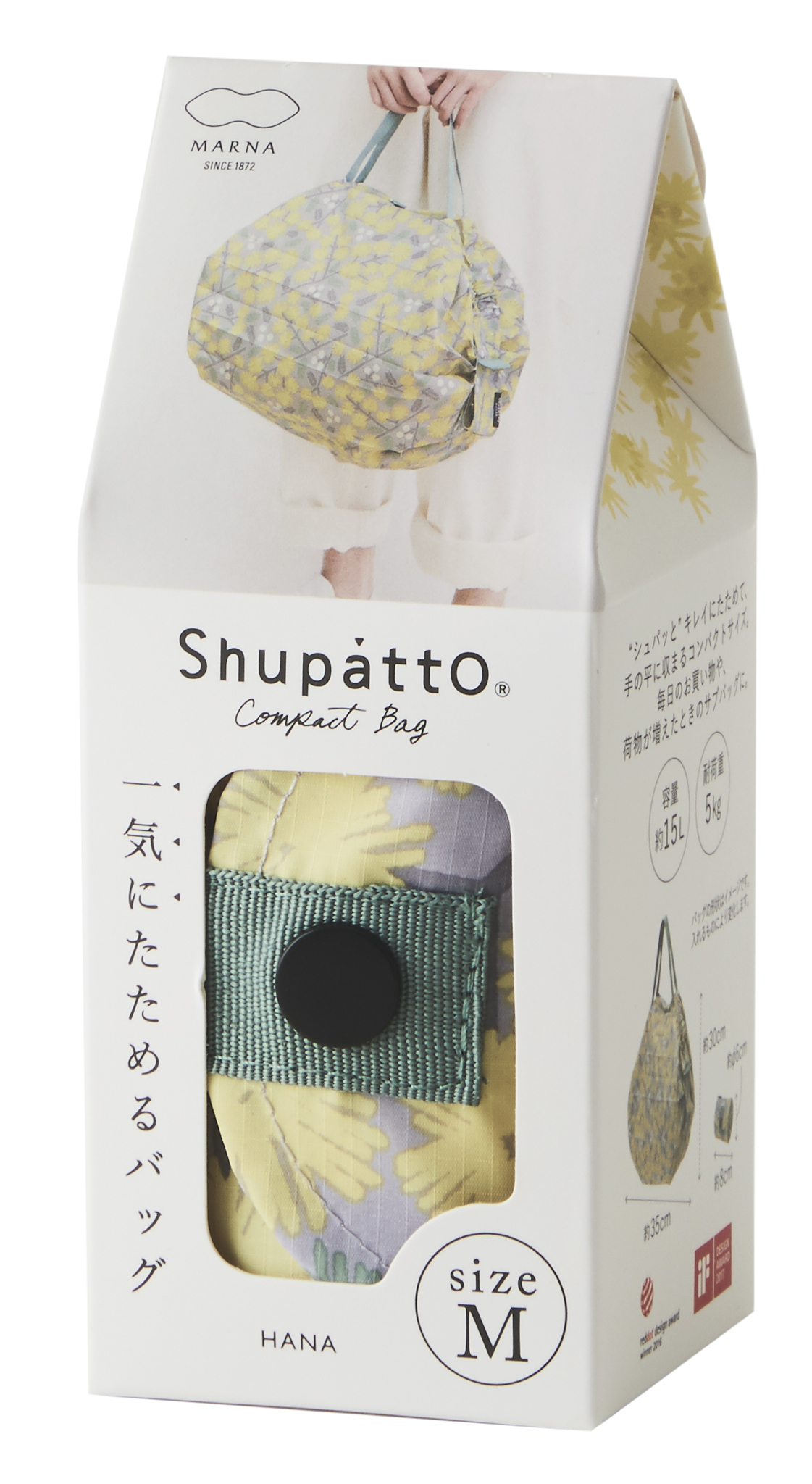 Compact Bag M - HANA - Faltbare Einkaufstasche One-Pull (patentiert) HANA (Mimosa), Mehrfarbig (Gelb/Grau), Grösse M - gefaltet 8x6 cm, 15 l