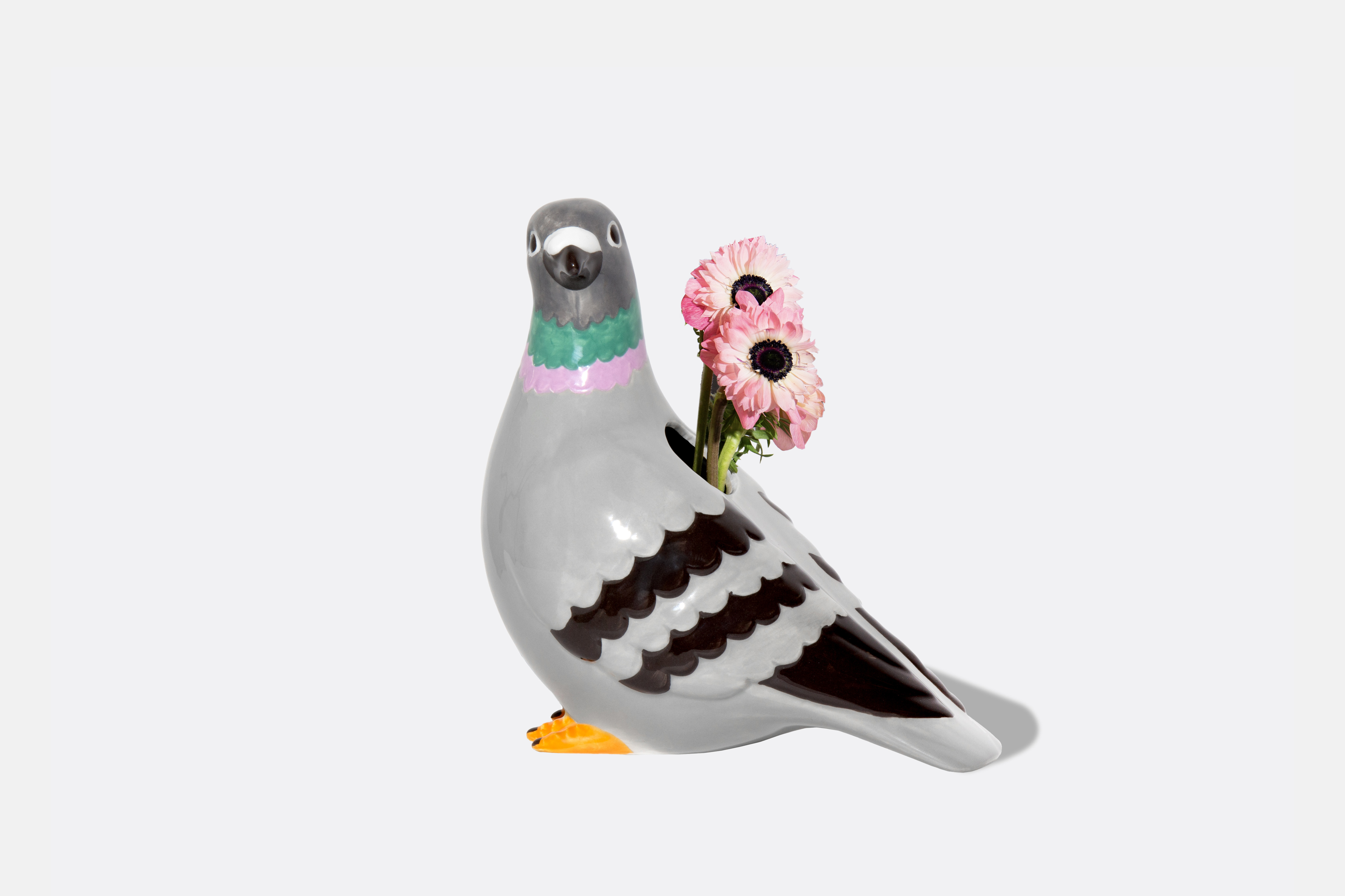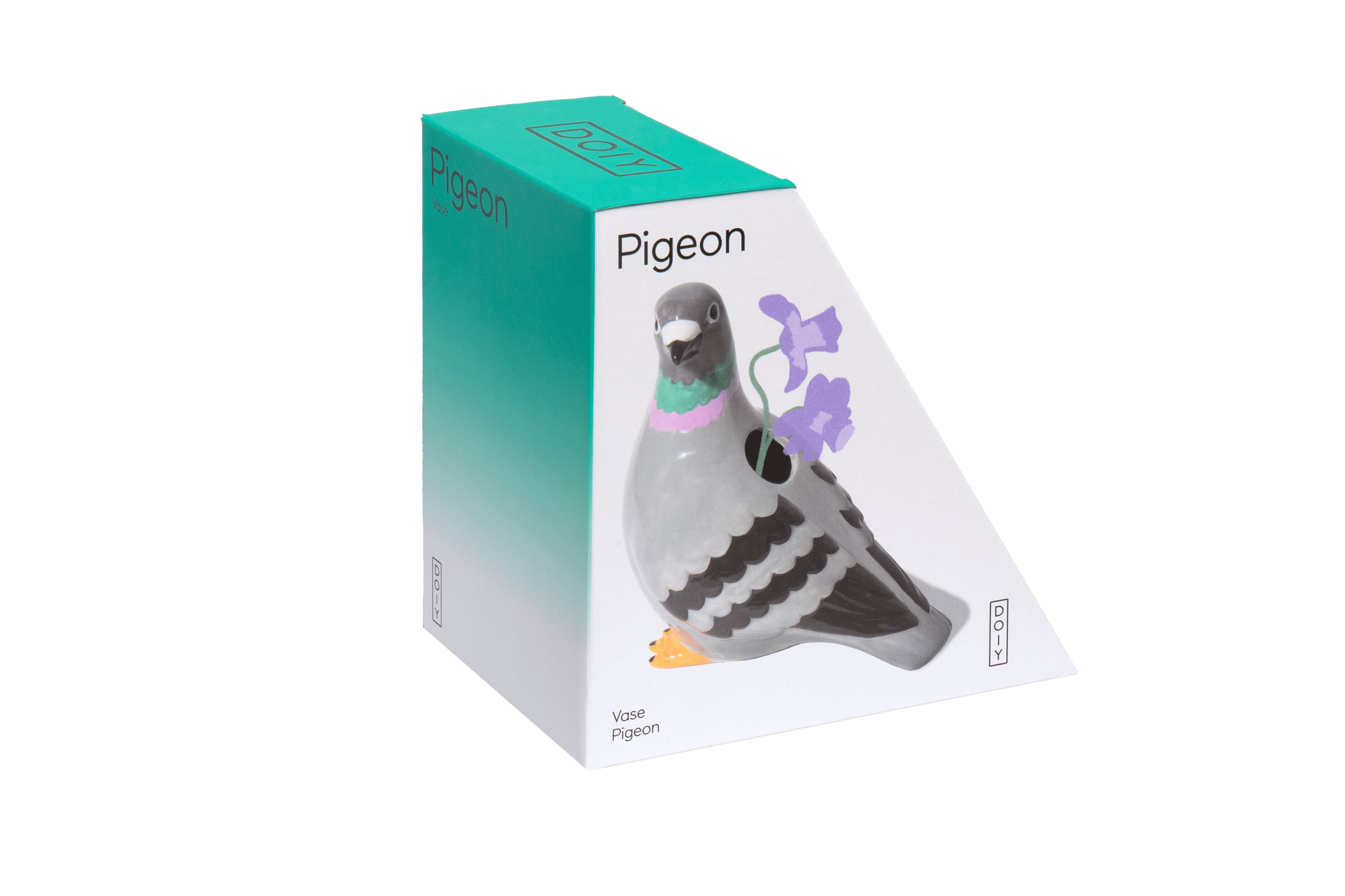 Pigeon M - Vase Tauben-Form, Keramik, grau, Höhe 18cm
