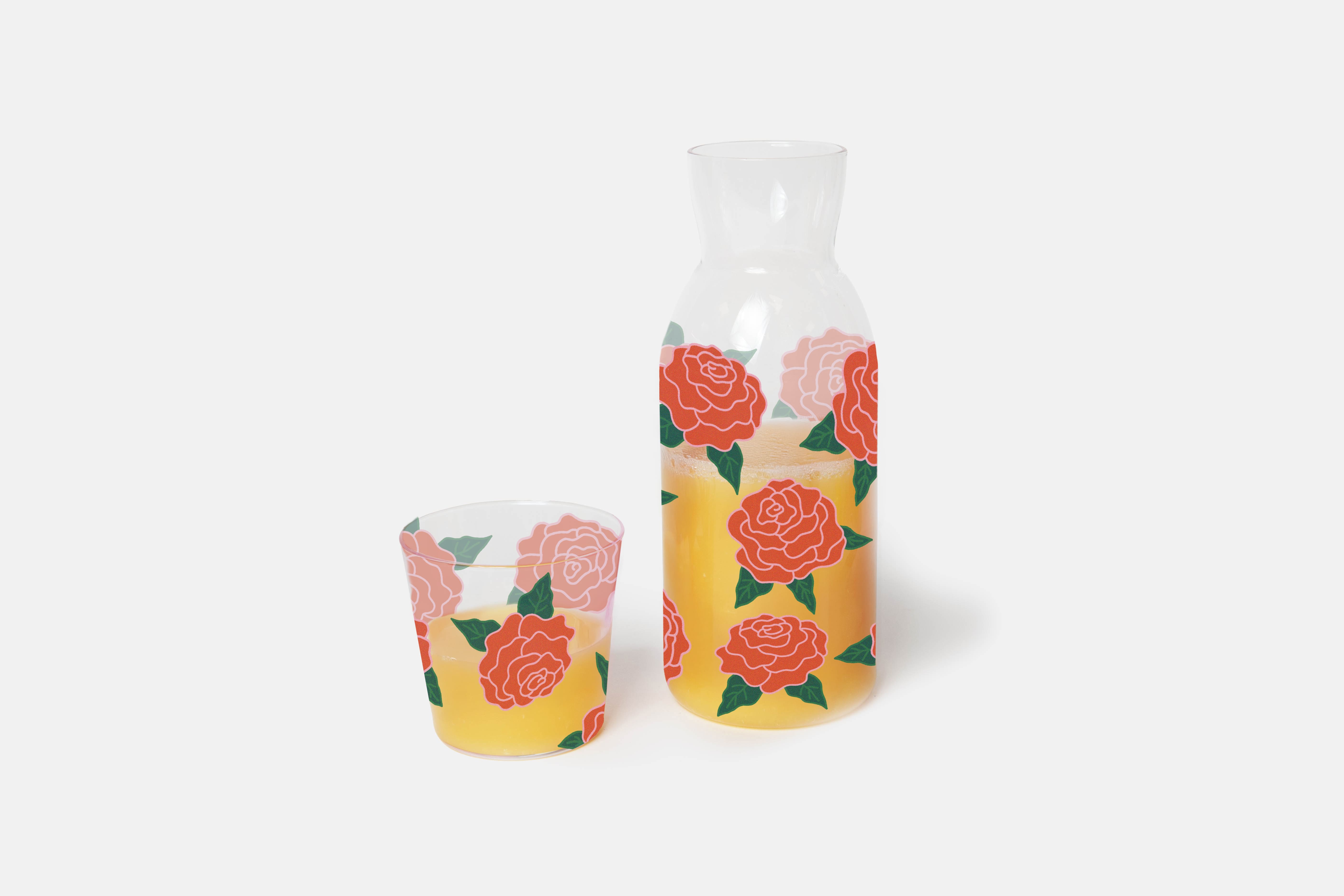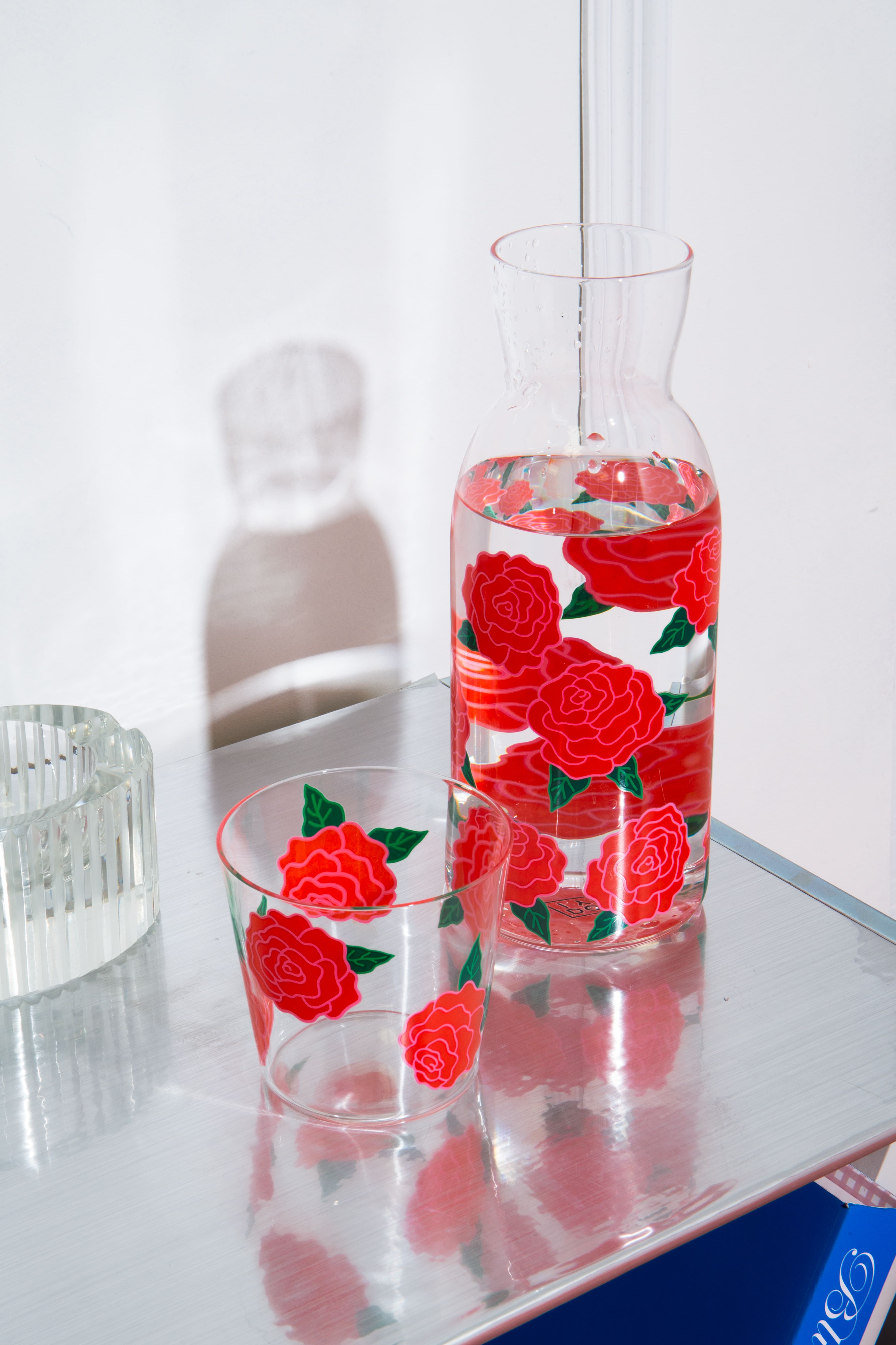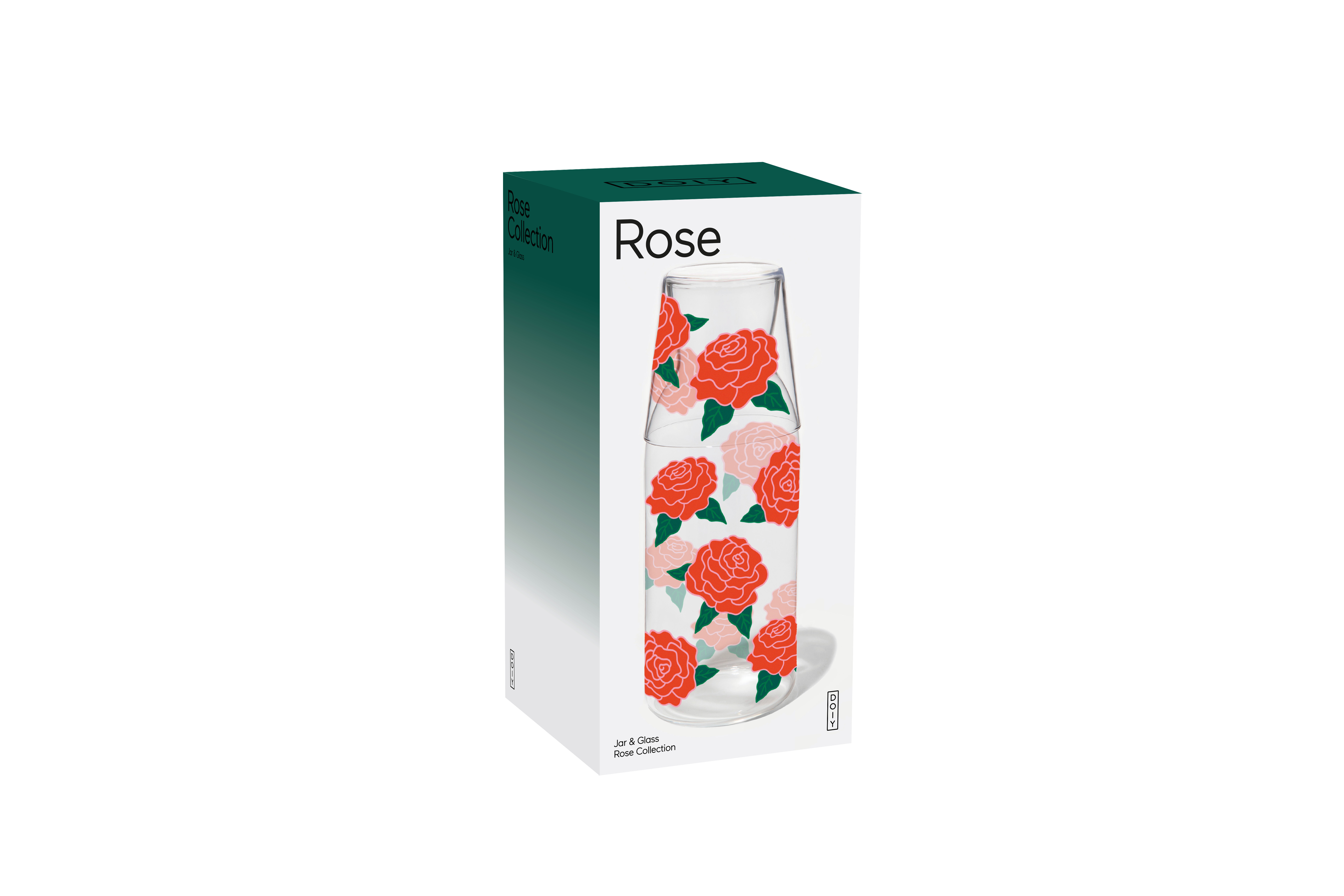 Rose Jar&Glass - Karaffe mit Glas Rosen-Sujets, Karaffe 910ml, Glas 280ml