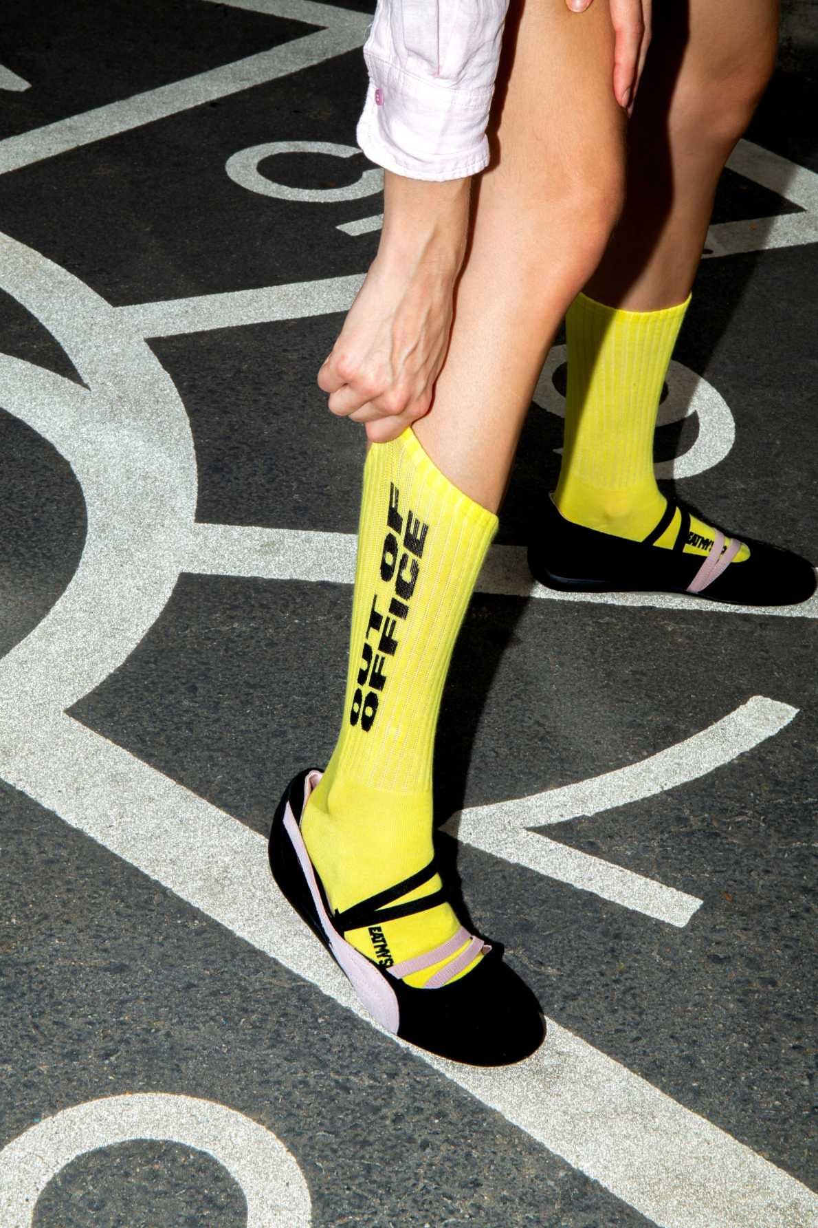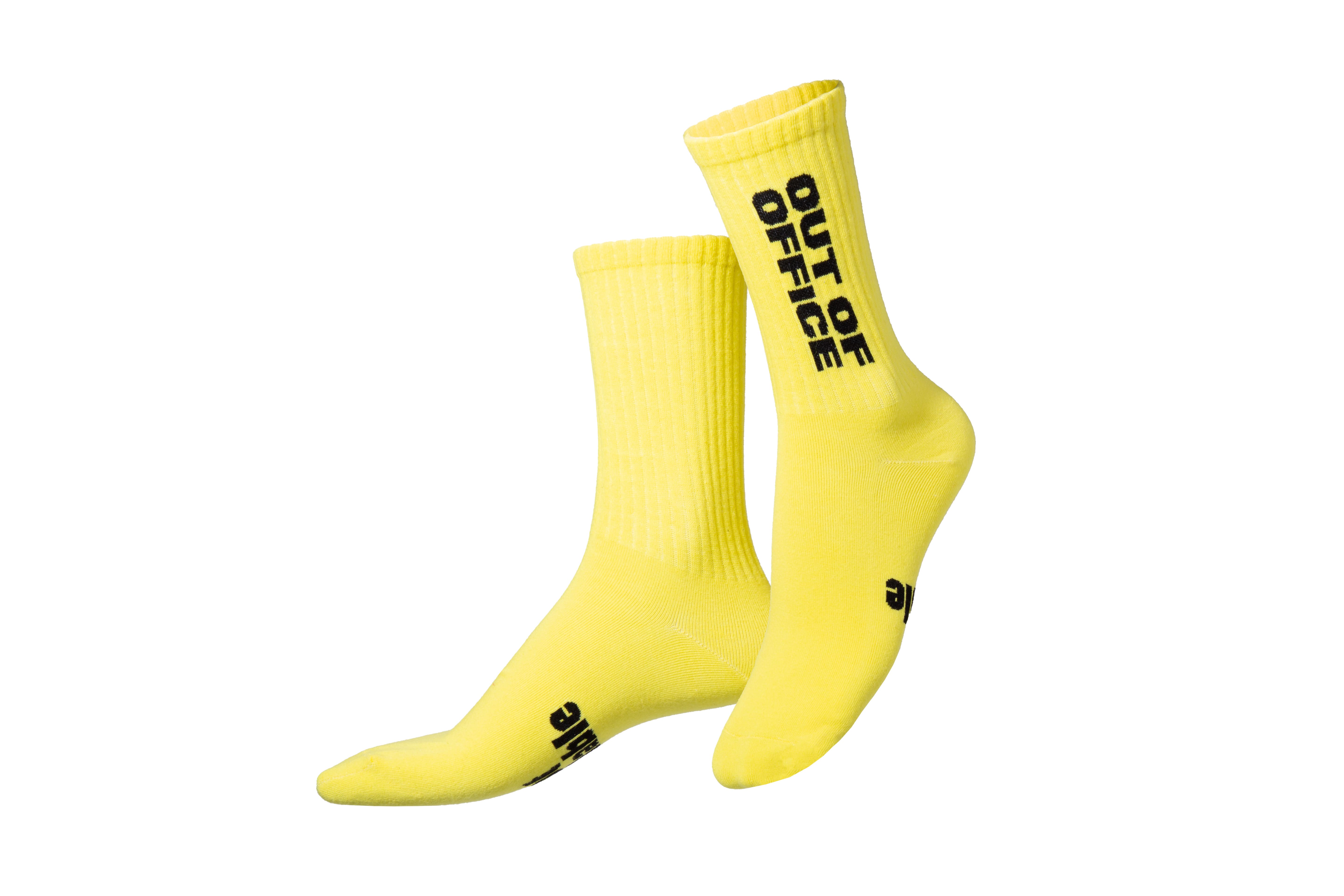 Out of office - Socken 1 Paar Socken mit Spruch auf Sohle, gelb, onesize (36 - 45)