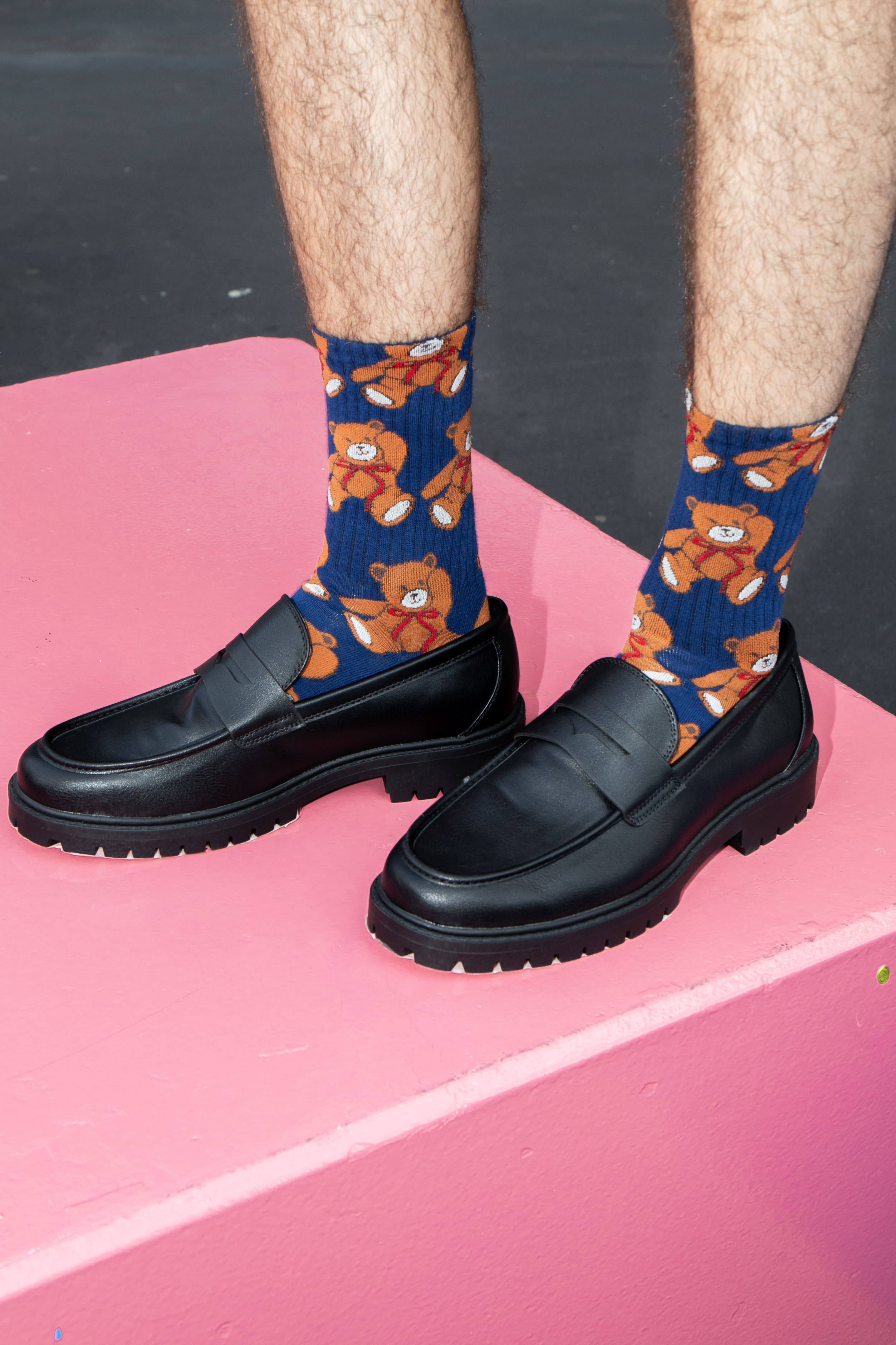 Teddy Bär - Socken 1 Paar Socken mit Spruch auf Sohle, blau-braun, onesize (36 - 45)