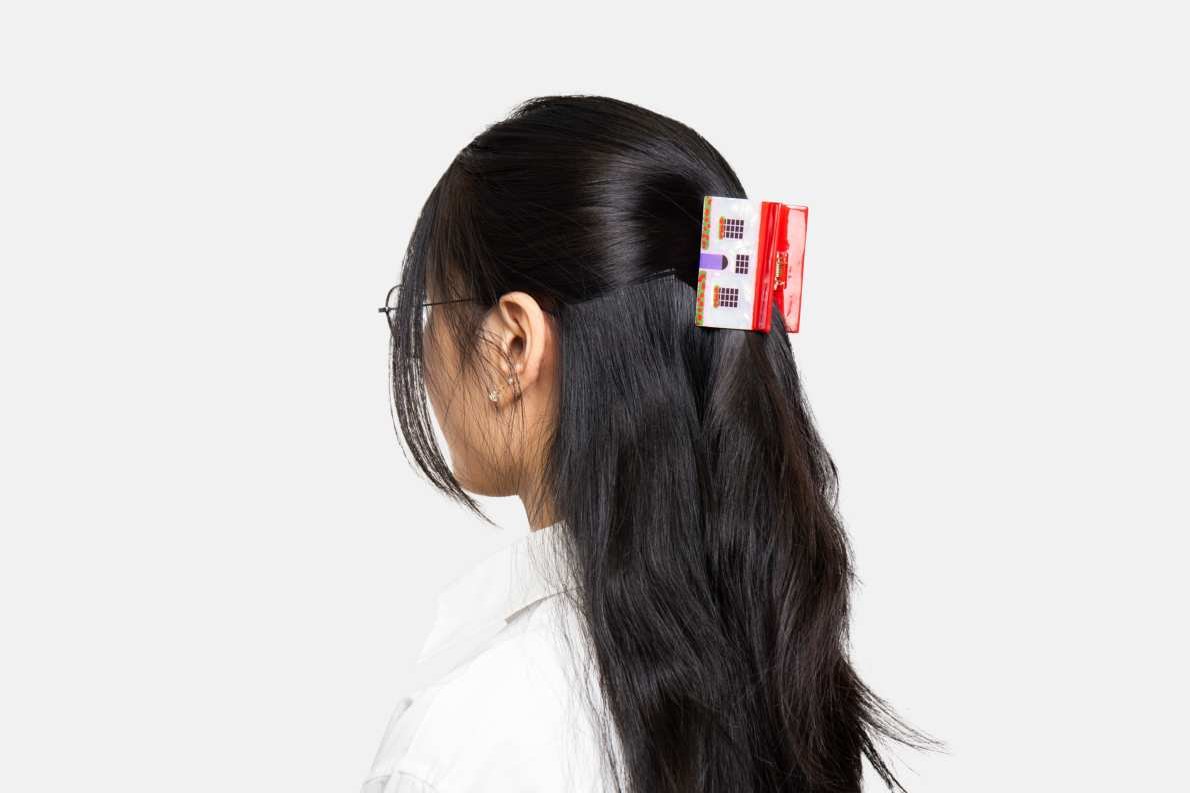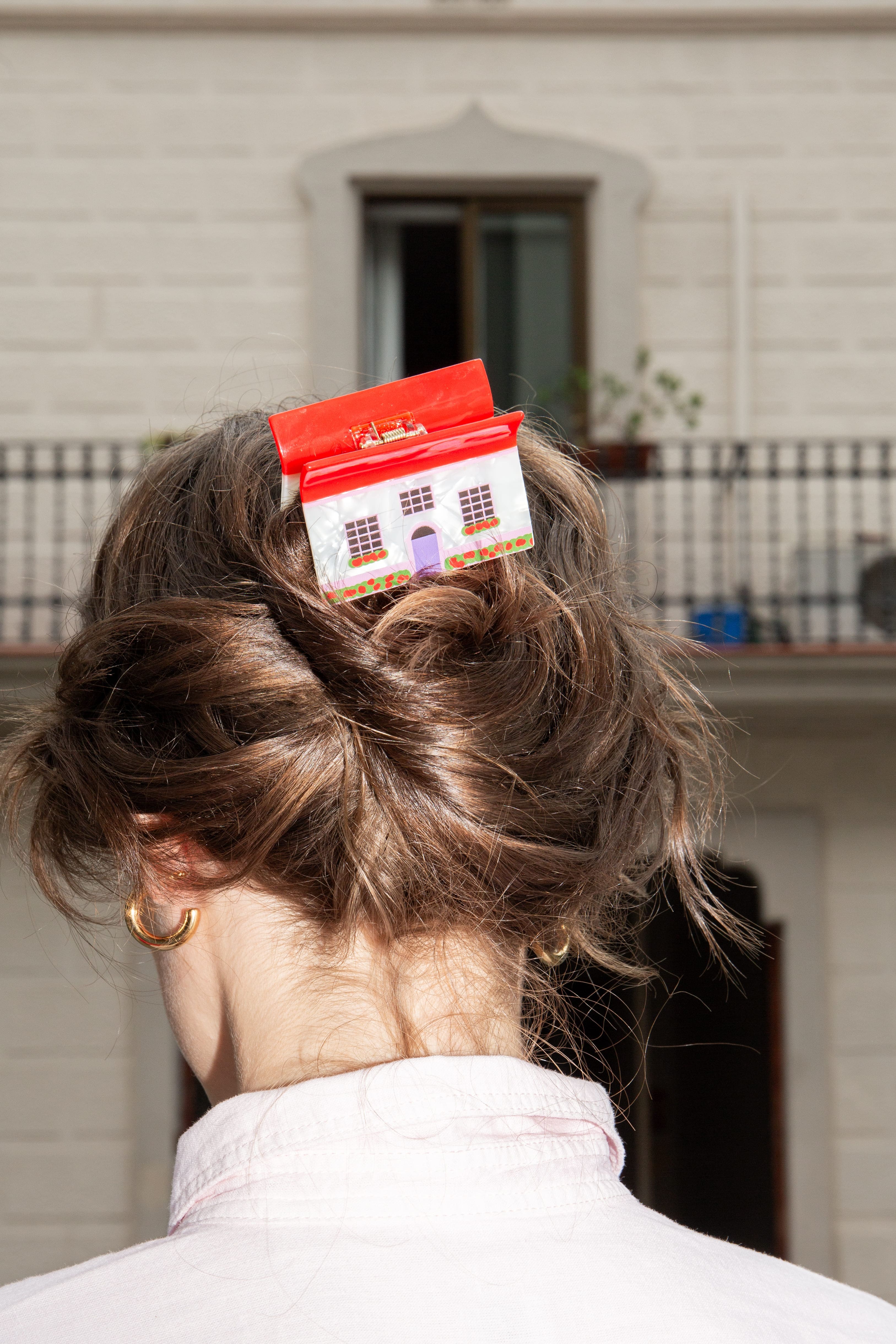 House - Haarspange Haus-Form, weiss-rot, Bio-Kunststoff (Cellulose Acetat)