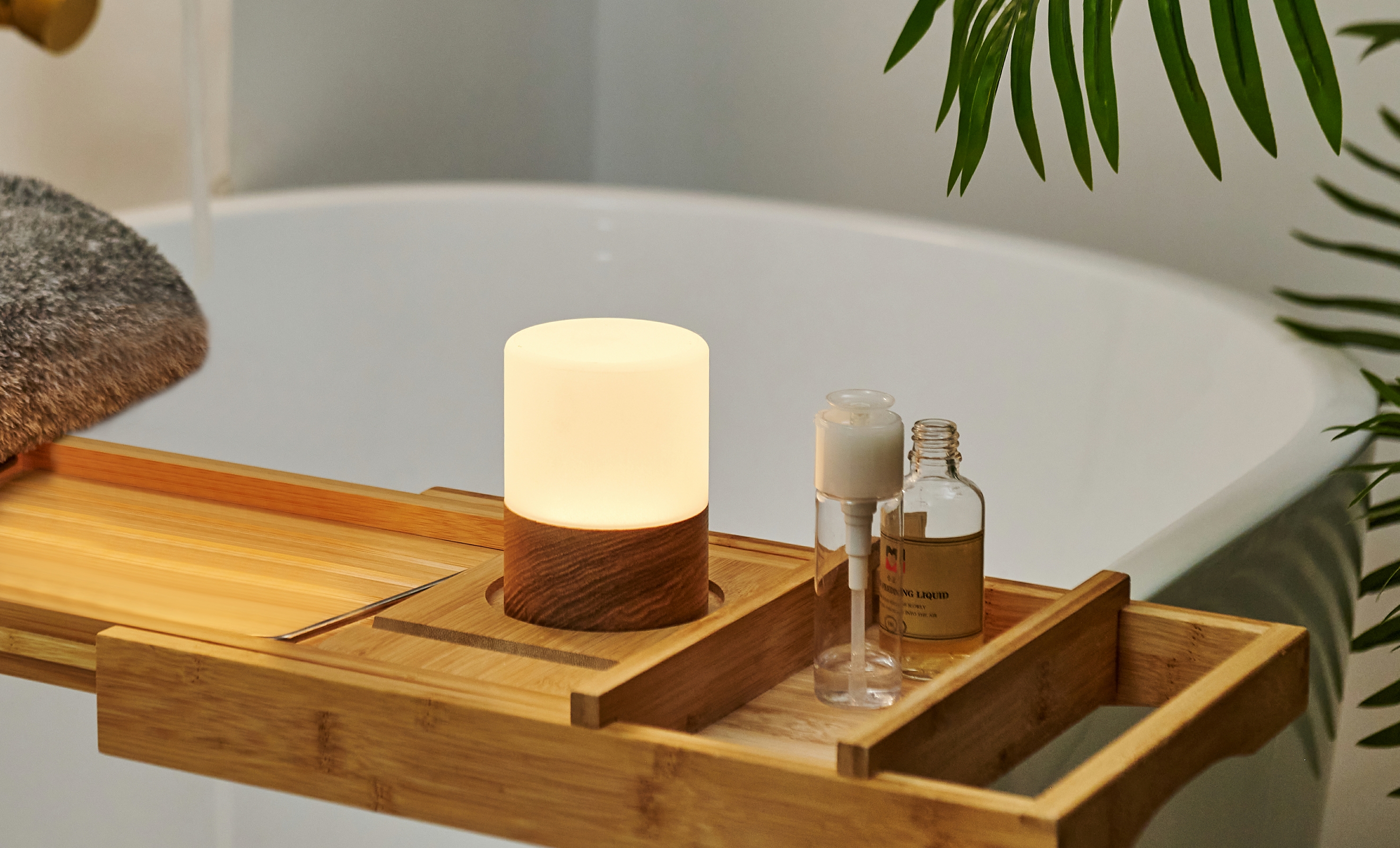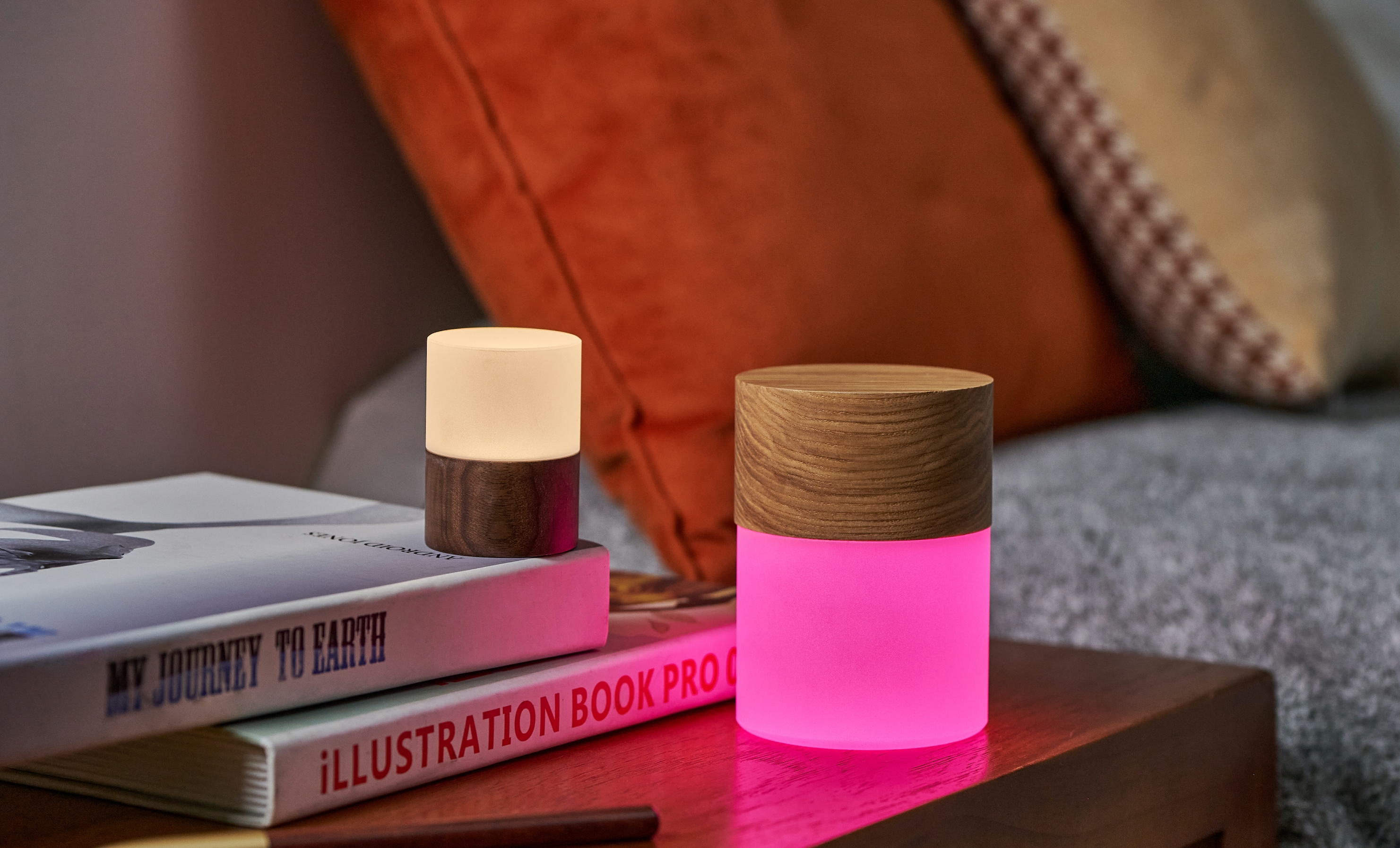 Large Lemelia Light Nussbaum FSC-zertifiziert, Acryl-Glas, 7 Farben, dimmbar