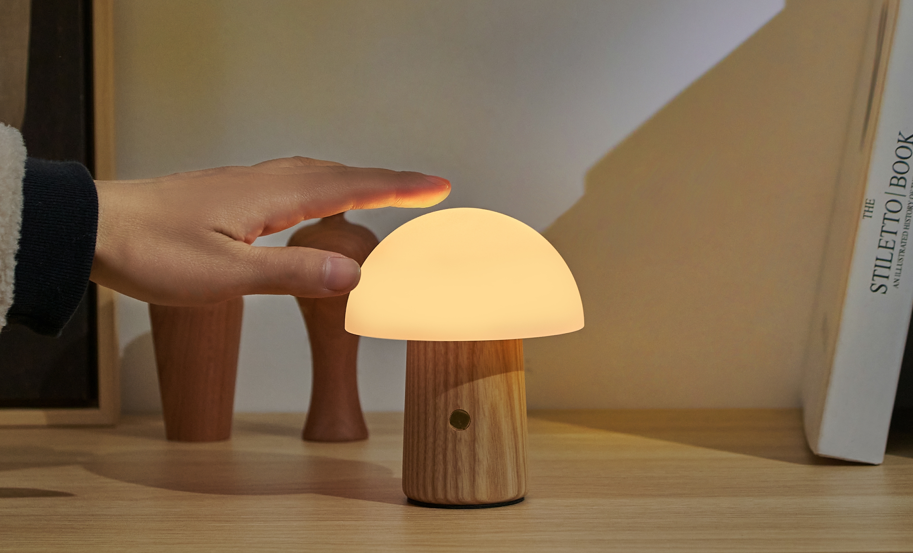 Mini Alice Mushroom Lamp Esche FSC-zertifiert, Acryl-Glas, 7 Farben in zwei Lichtstufen