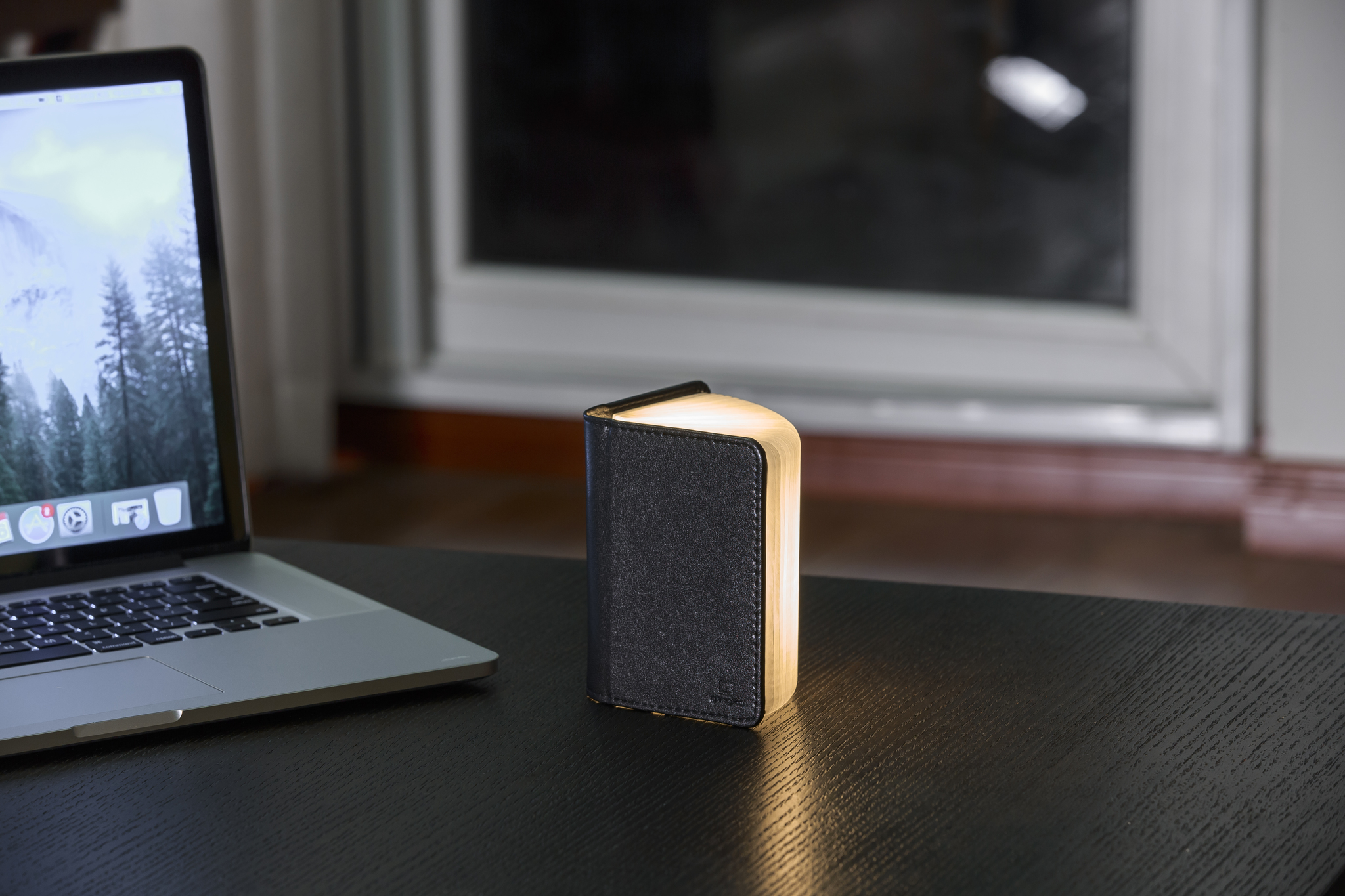 Mini Smart Book Light - Stimmungslicht Leather black klein, inkl. USB Ladekabel, warmes Licht
