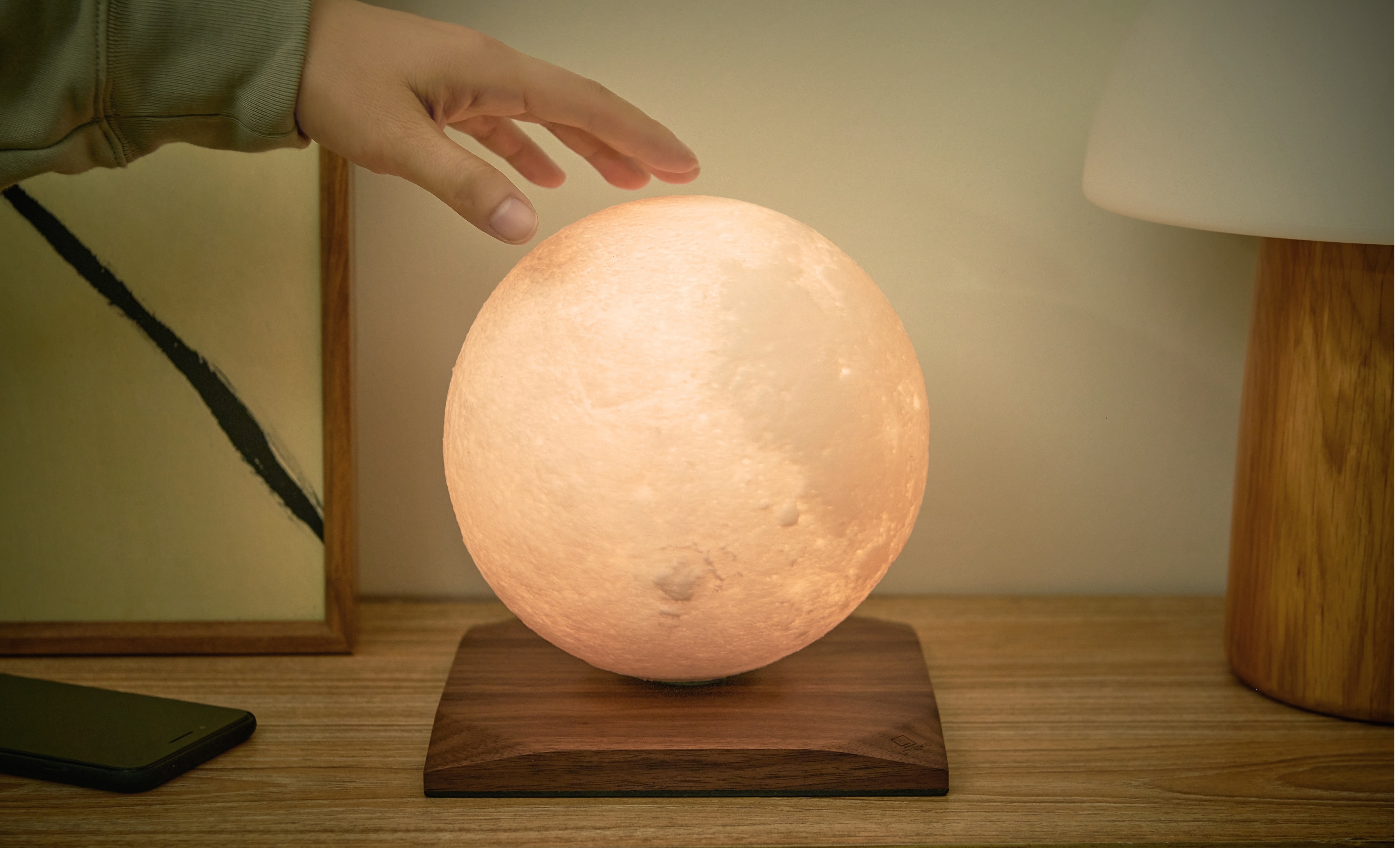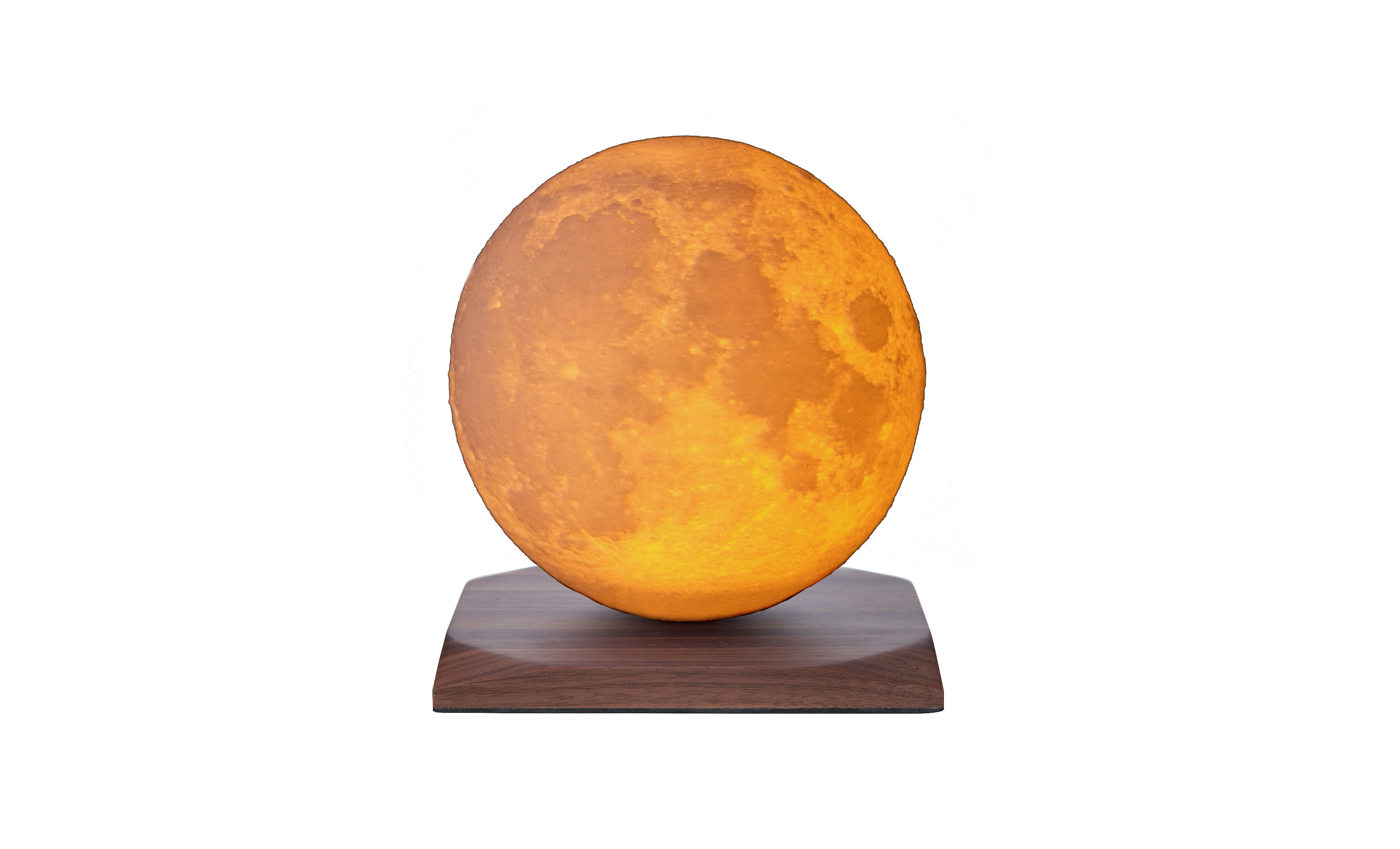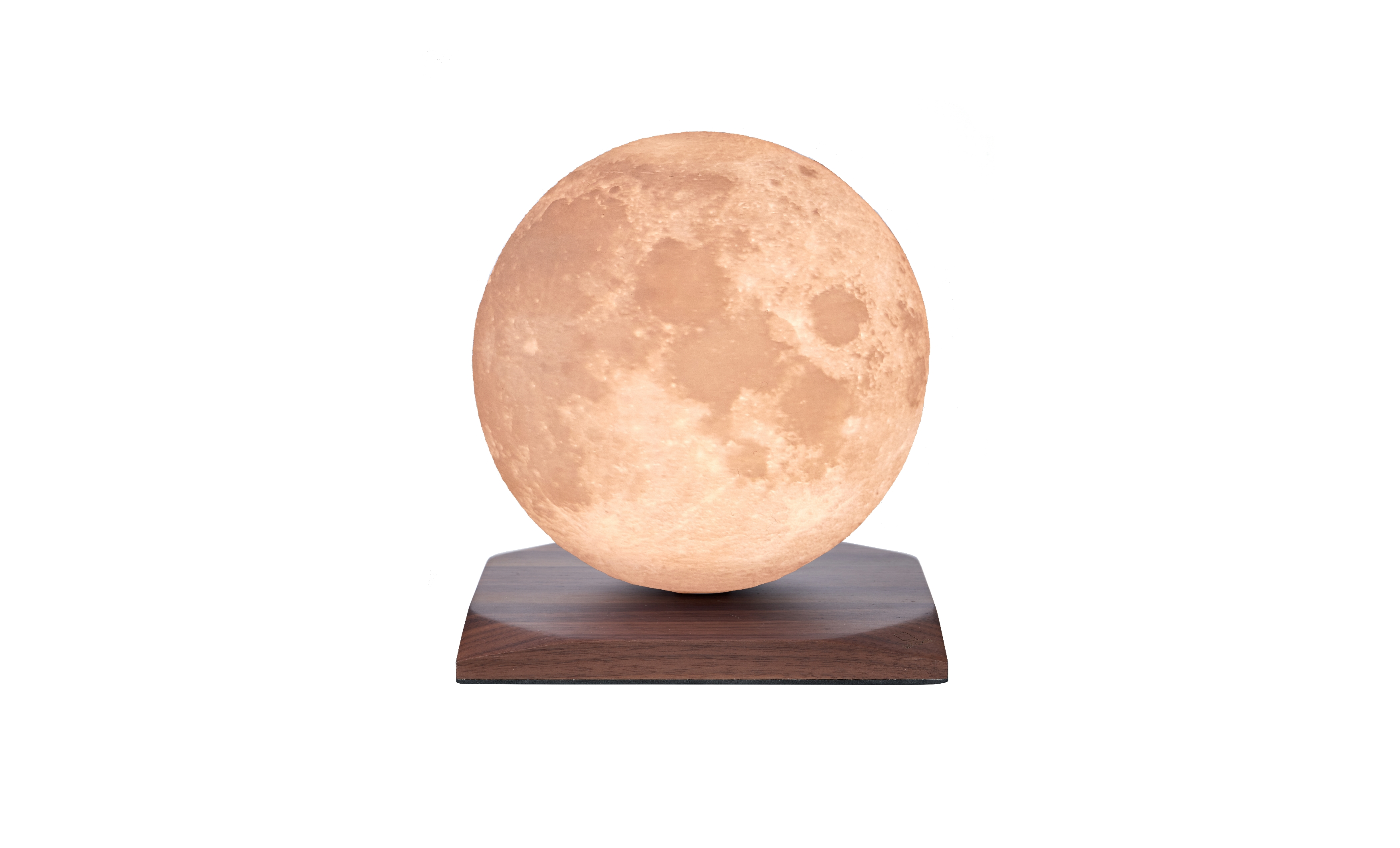 Smart LunaSpin Lamp - Large Size Sockel Nussbaum-Holz, dimmbares Licht, mini Ø18 cm, 3D-Druck