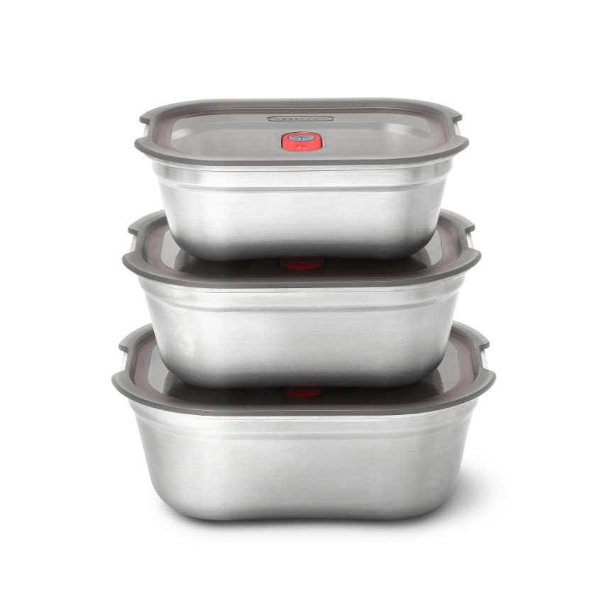 STEEL FOOD BOX - Set - Lunchbox eckig, je 1x 600, 900, 1200ml, geeignet für Mikrowelle, Lagern, Einfrieren und für unterwegs
