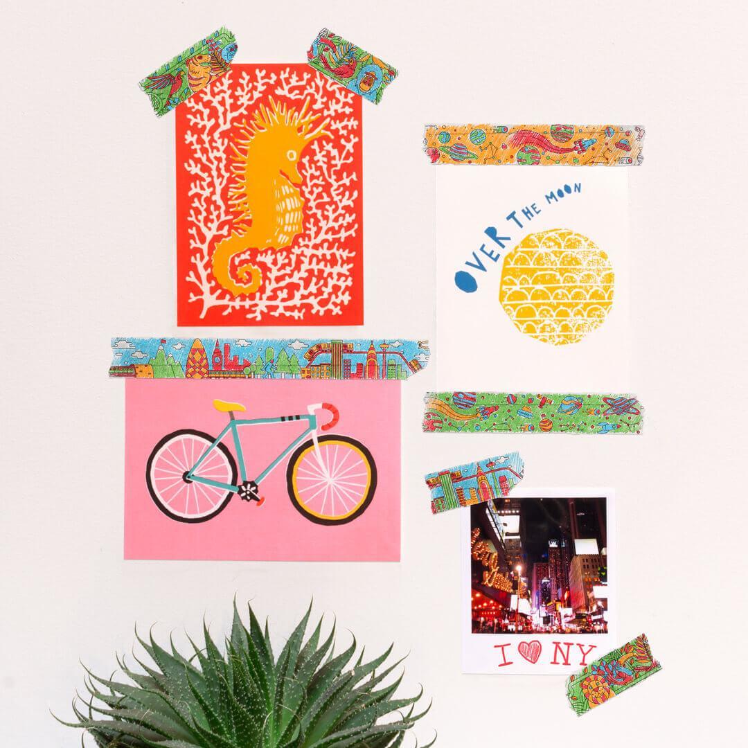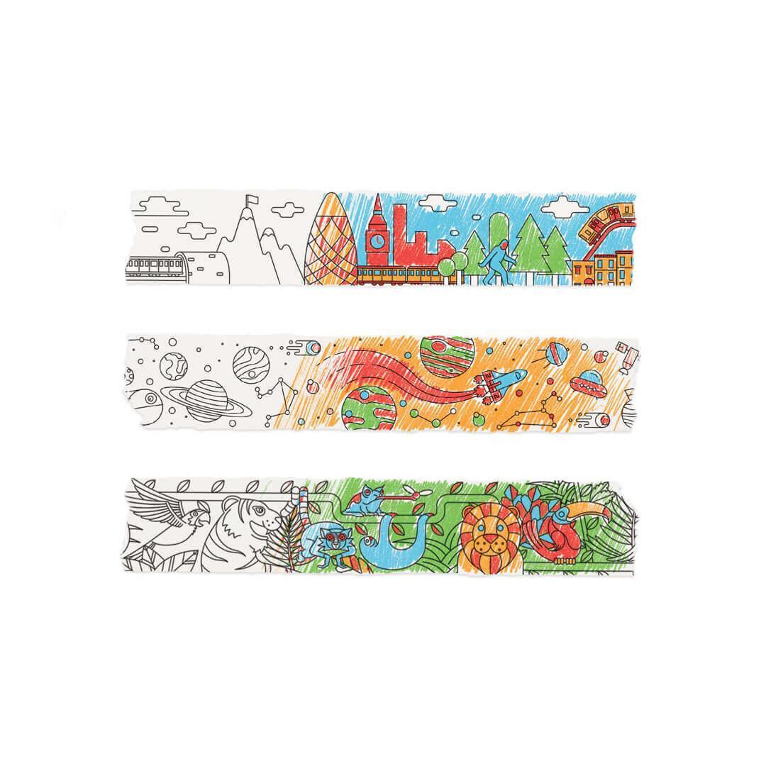 Doodle Tape - Klebeband von Luckies, welches Sie selber gestalten können. Set enthält drei Rollen mit unterschiedlichen Motiven wie, Landschaften, Dschungel und Weltall. Verwenden Sie dieses Klebeband zum Verpacken von Geschenken. Ideal auch zum Aufhängen von Bildern geeignet - hinterlässt keine Spuren an den Wänden.