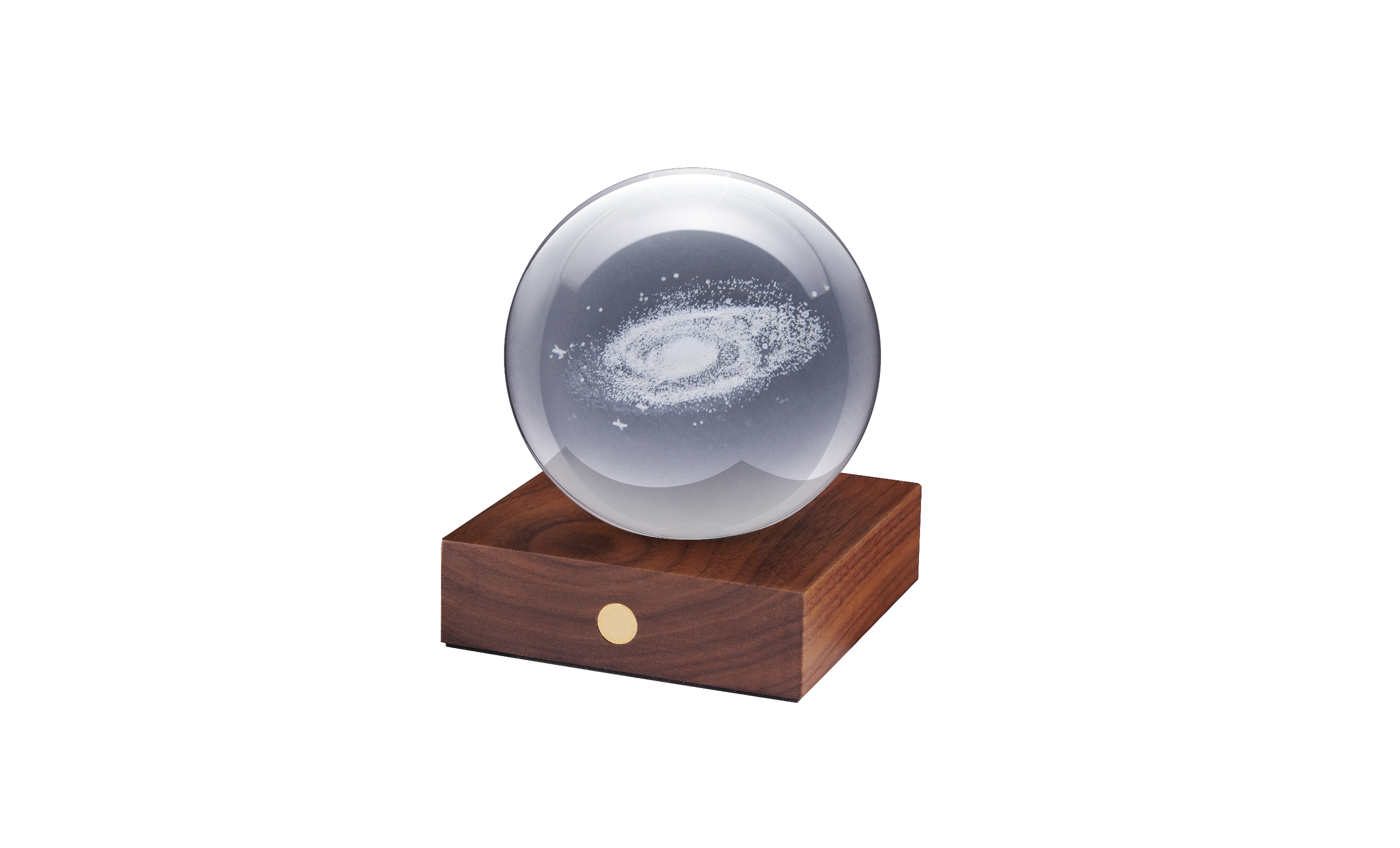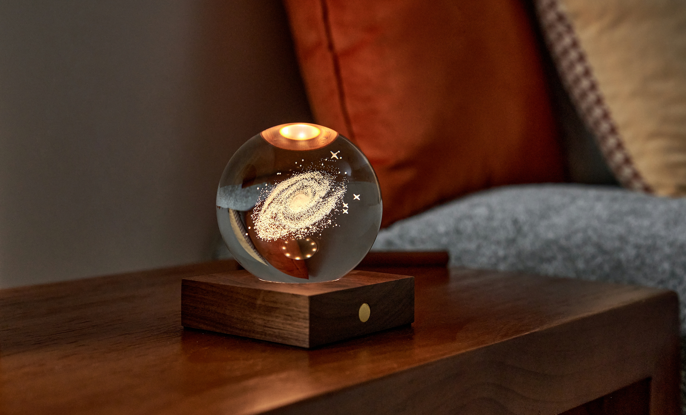 Amber Crystal Light Galaxy, Basis FSC-zertifiziertes Holz, 3 Lichtstufen, Kugel 3D lasergedruckt