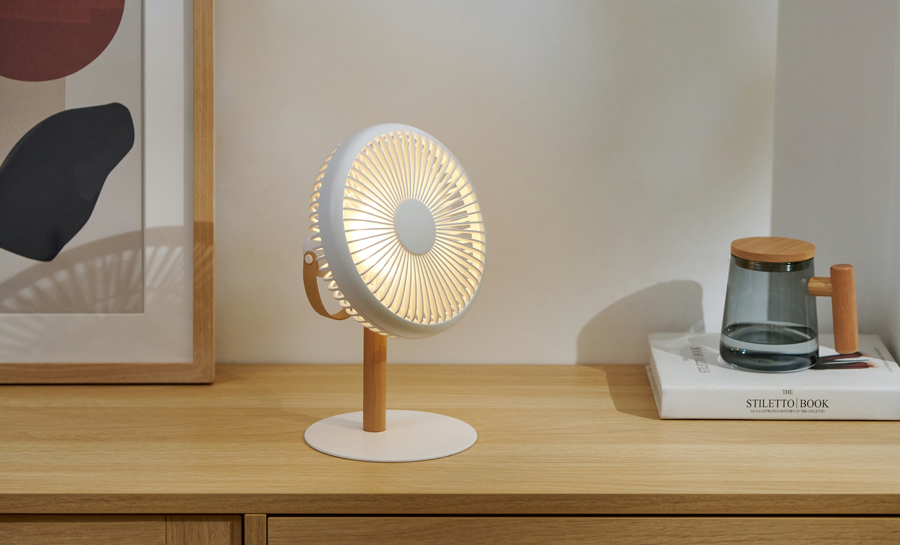 Beyond Detachable Desk Fan/ Light Weiss, ABS und FSC-zertifiziert, 3 Windstärken, Lichtfunktion, Fernbedienung