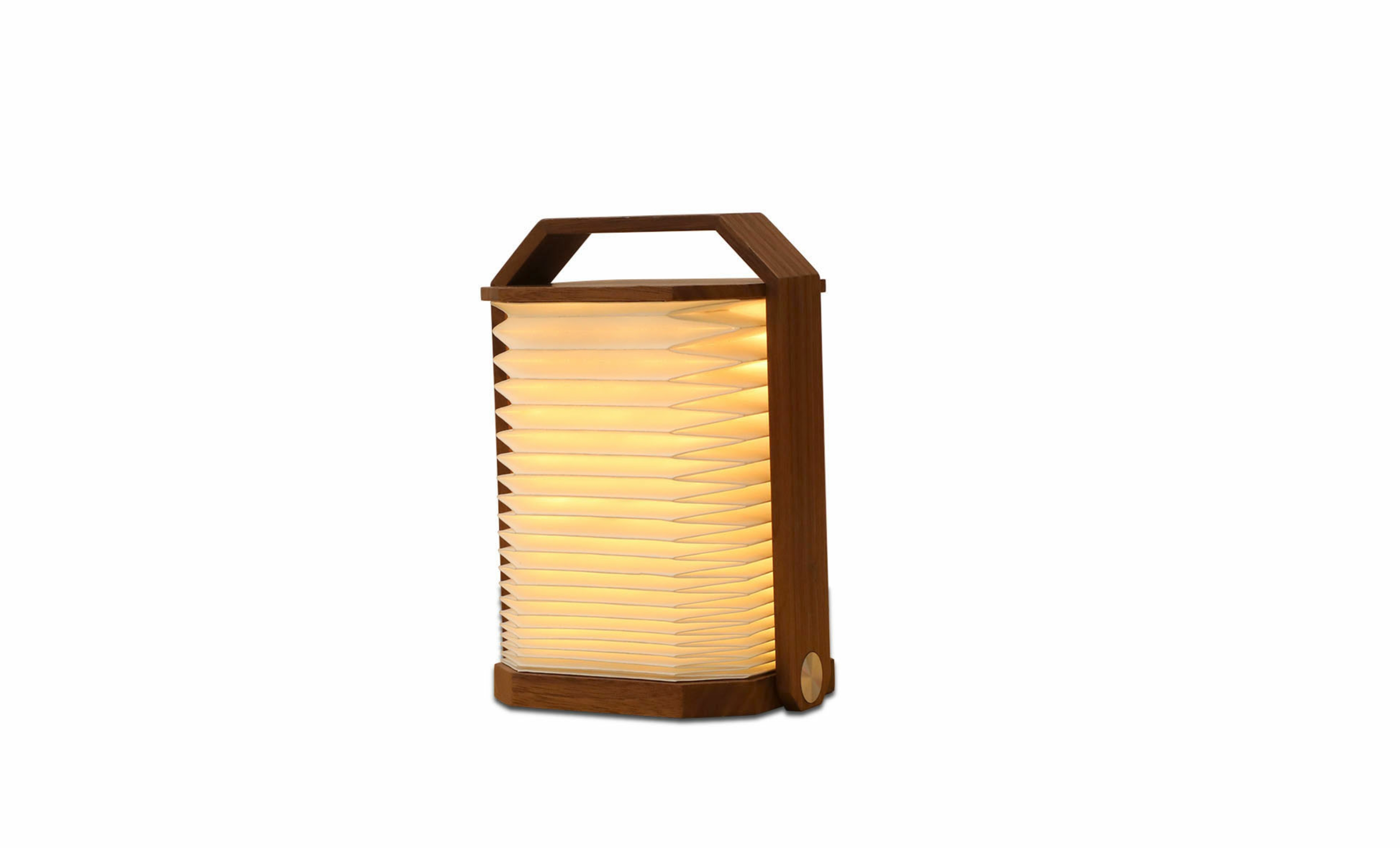 Smart Origami Lamp - Laterne Nussbaum-Holz und wasserresistentes Tyvek-Papier, in 5 Formen nutzbar