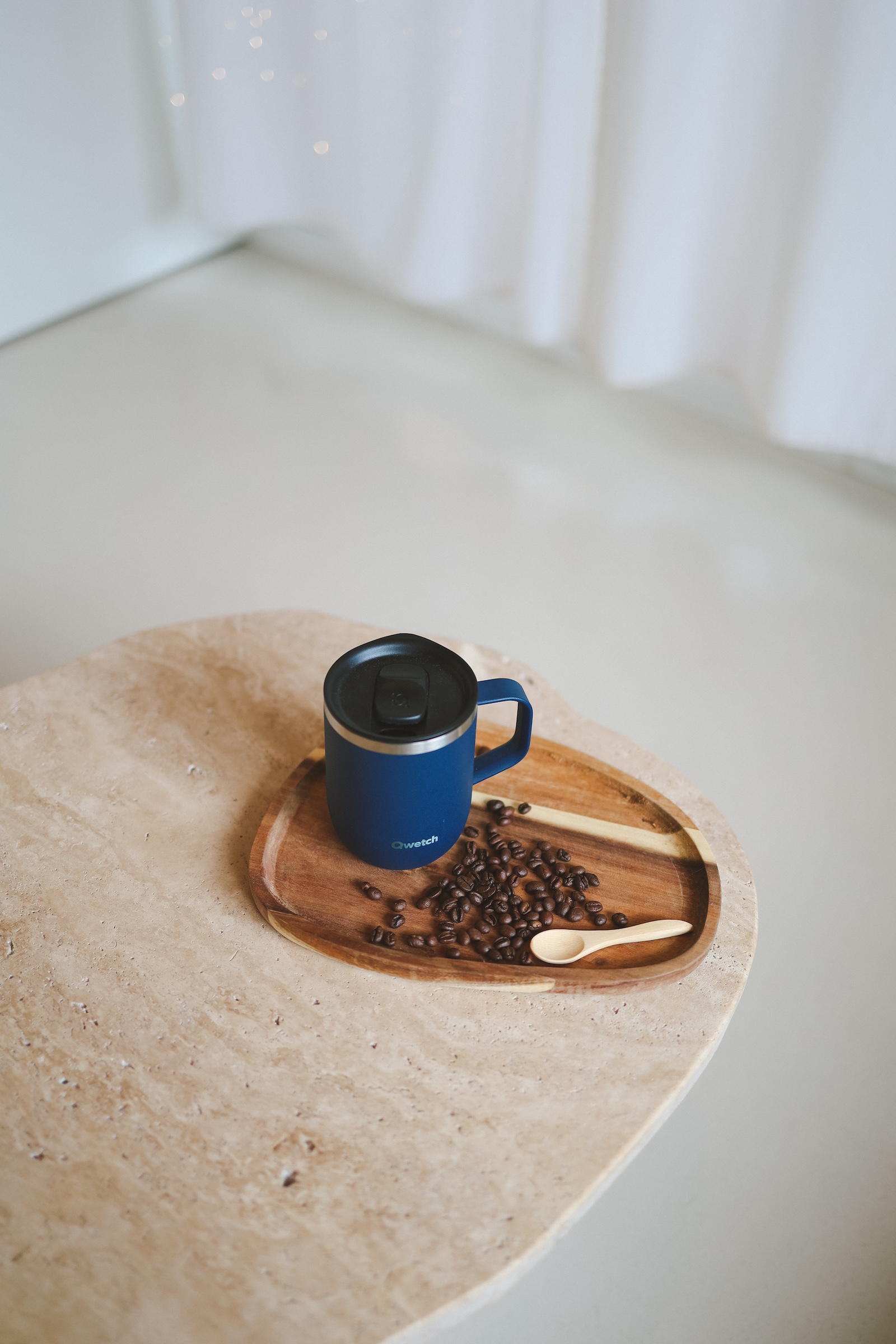 Mug isotherme - Isolierbecher aus recyceltem Edelstahl, matt nacht-blau, 350ml, mit Henkel