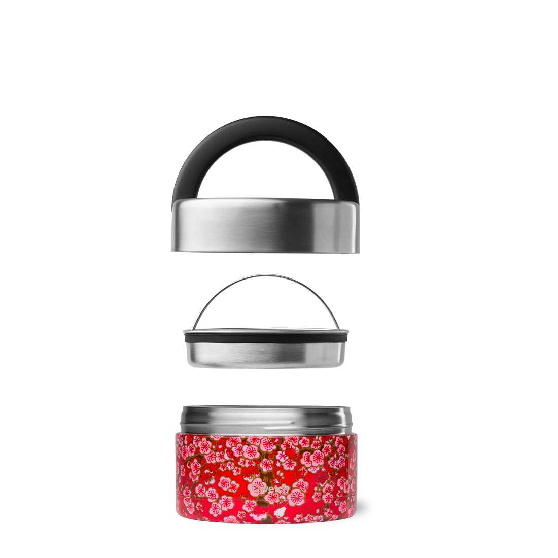 Stainless steel insulated lunch box with handle - Essensbehälter Flowers-Red, auslaufsicher, mit Henkel, 650ml (Abtrennfach exkl.)