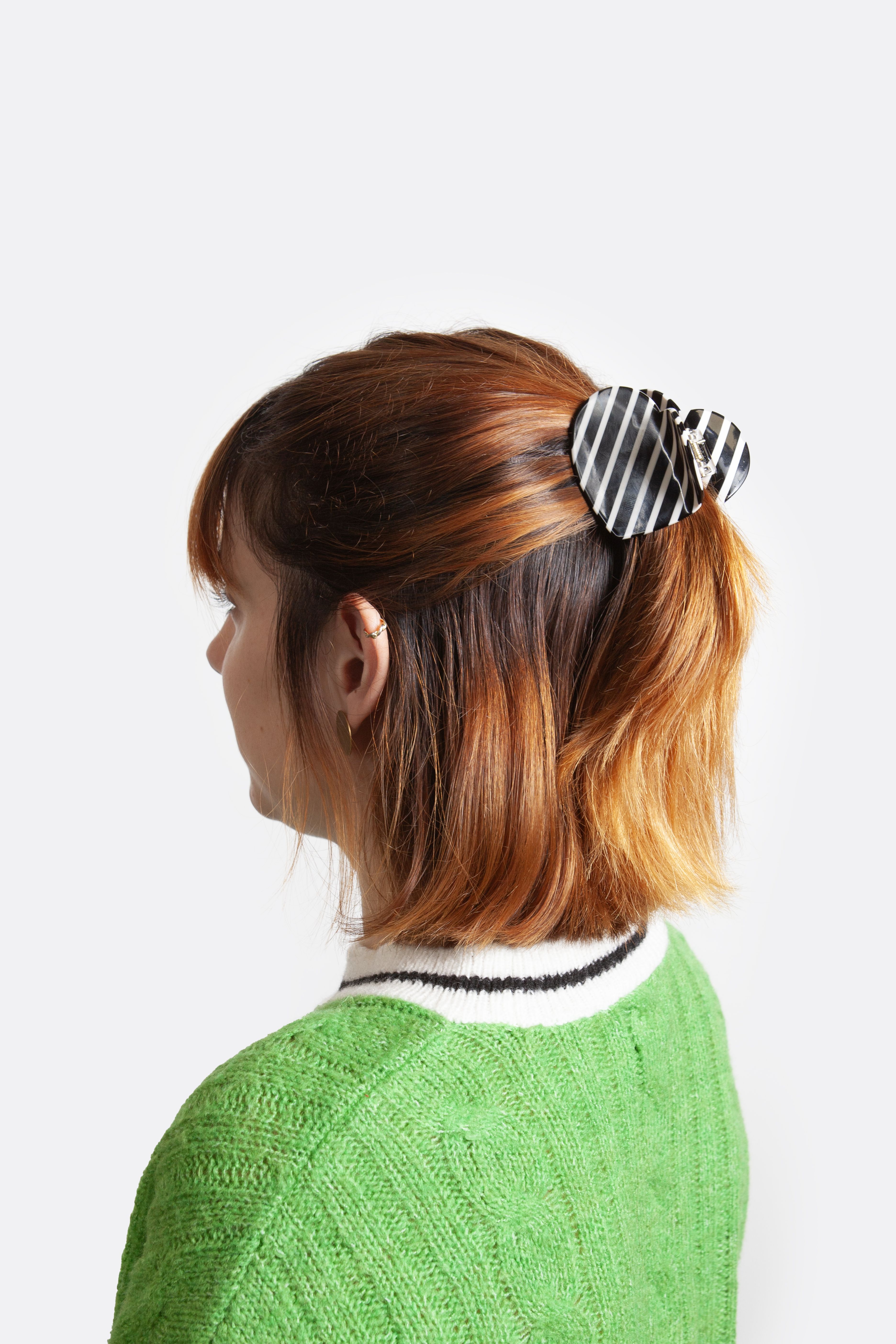Heart B&W Stripes Hair Claws - Haarspange Hergestellt aus biologischem Cellulose Acetat