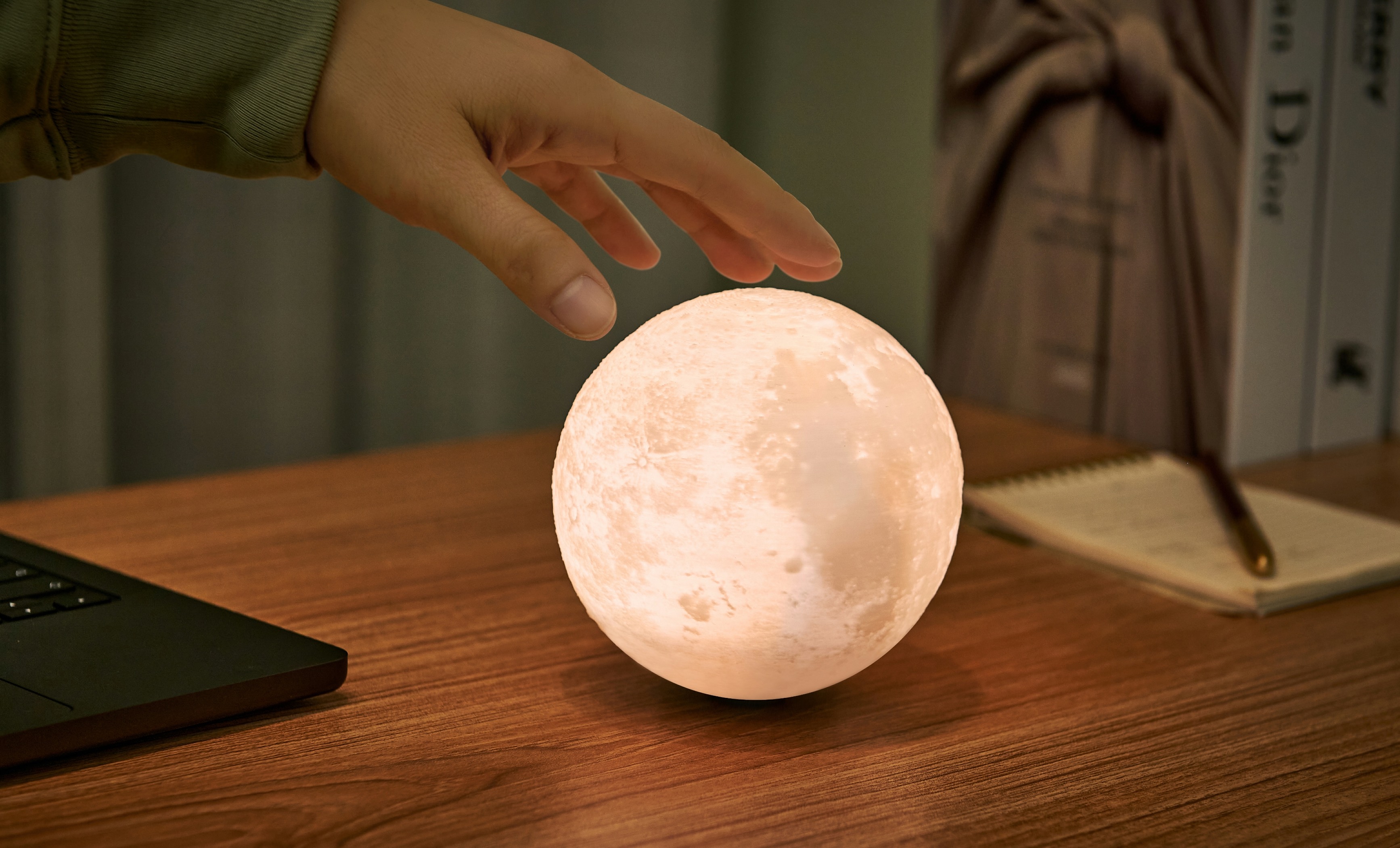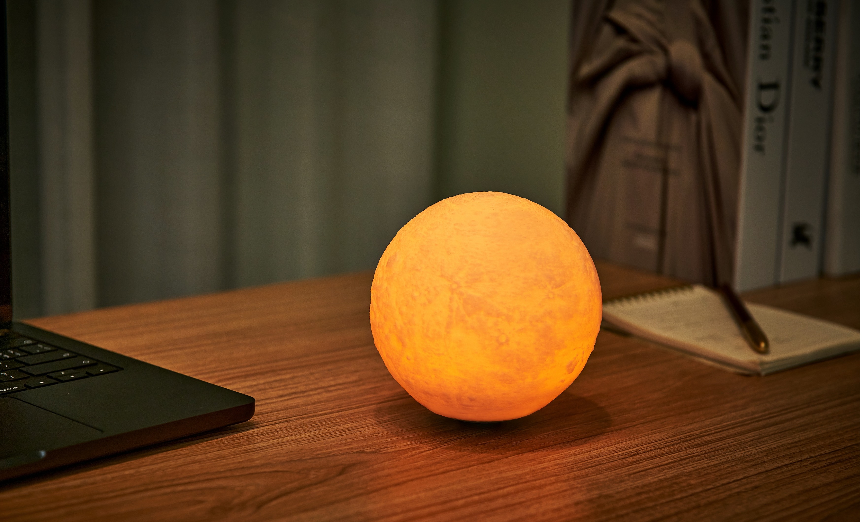 Smart LunaSpin Lamp - Mini Size Sockel Nussbaum-Holz, dimmbares Licht, mini Ø12 cm, 3D-Druck