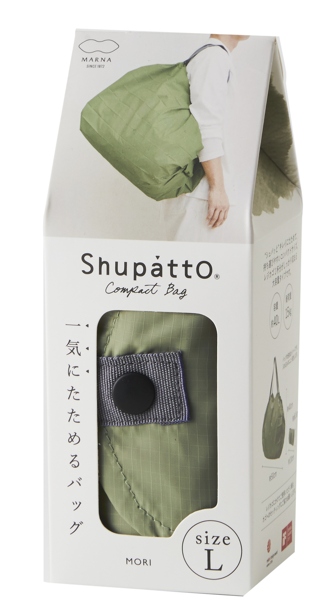 Compact Bag L - MORI - Faltbare Einkaufstasche One-Pull (patentiert) MORI (Forest), Khaki, Gröss L - gefaltet 10x6.5 cm , 40 l