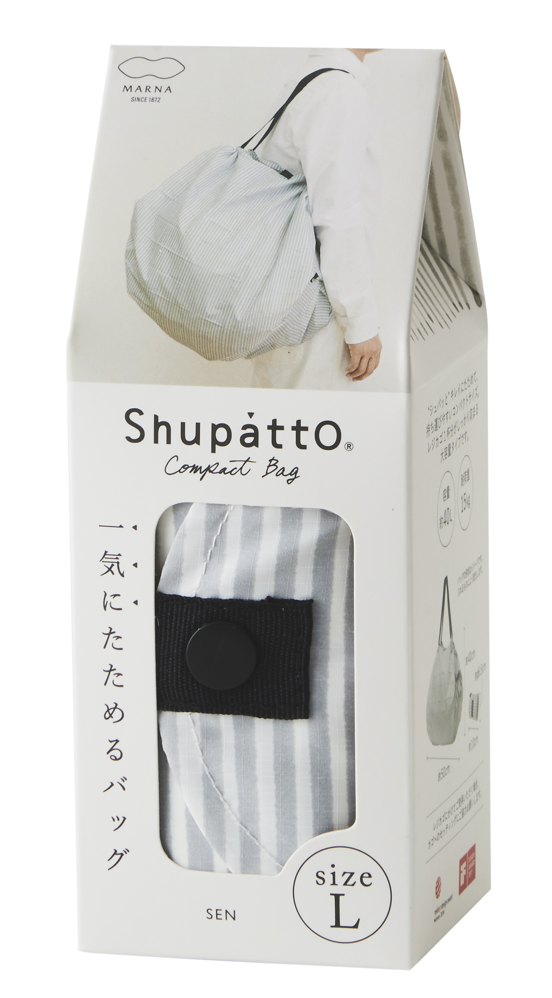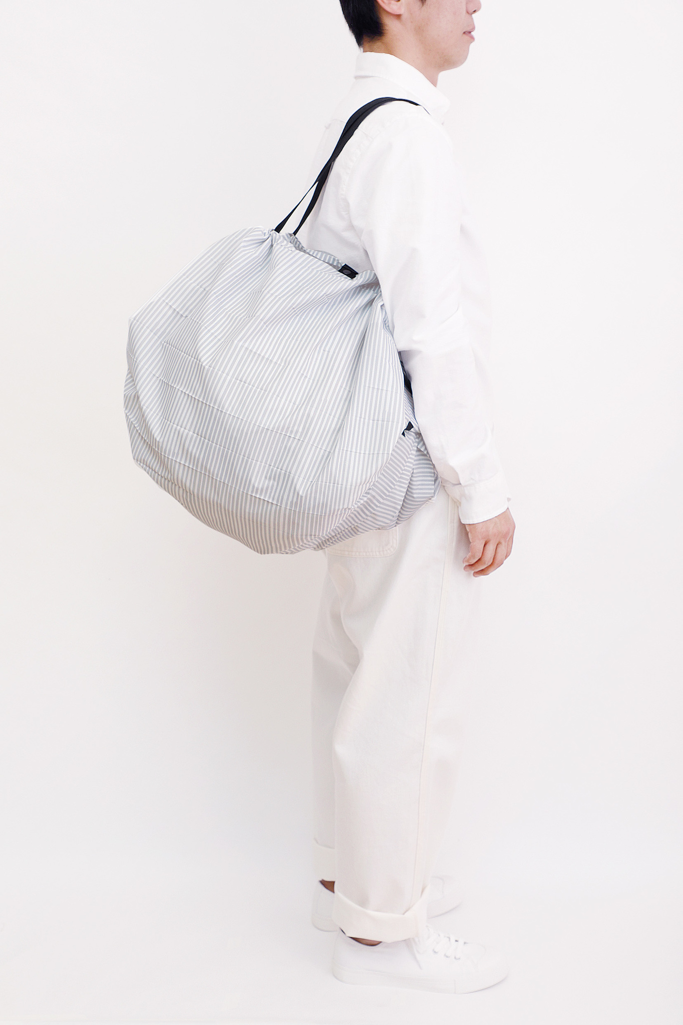 Compact Bag L - SEN - Faltbare Einkaufstasche One-Pull (patentiert) SEN (Stripe), Weiss, Gröss L - gefaltet 10x6.5 cm , 40 l