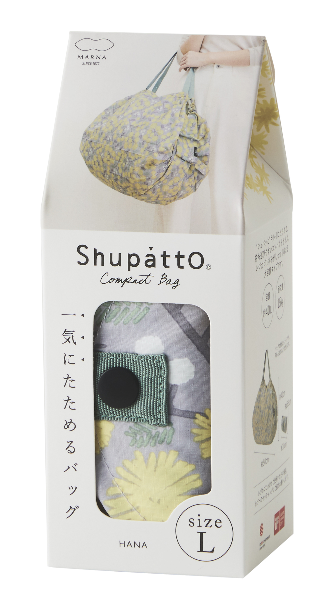 Compact Bag L - HANA - Faltbare Einkaufstasche One-Pull (patentiert) HANA (Mimosa), Mehrfarbig (Gelb/Grau), Gröss L - gefaltet 10x6.5 cm , 40 l