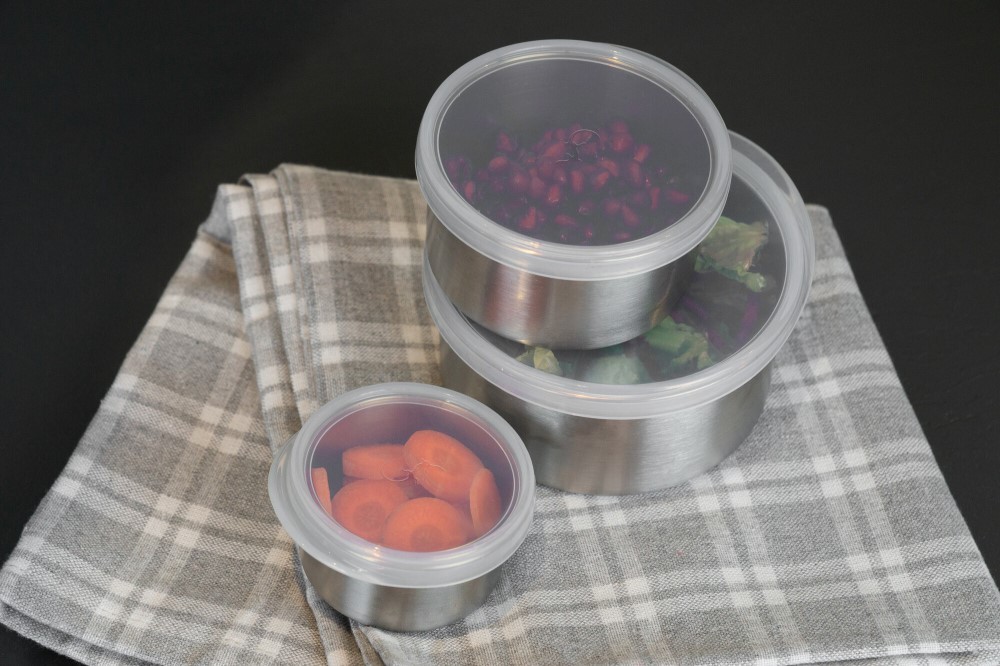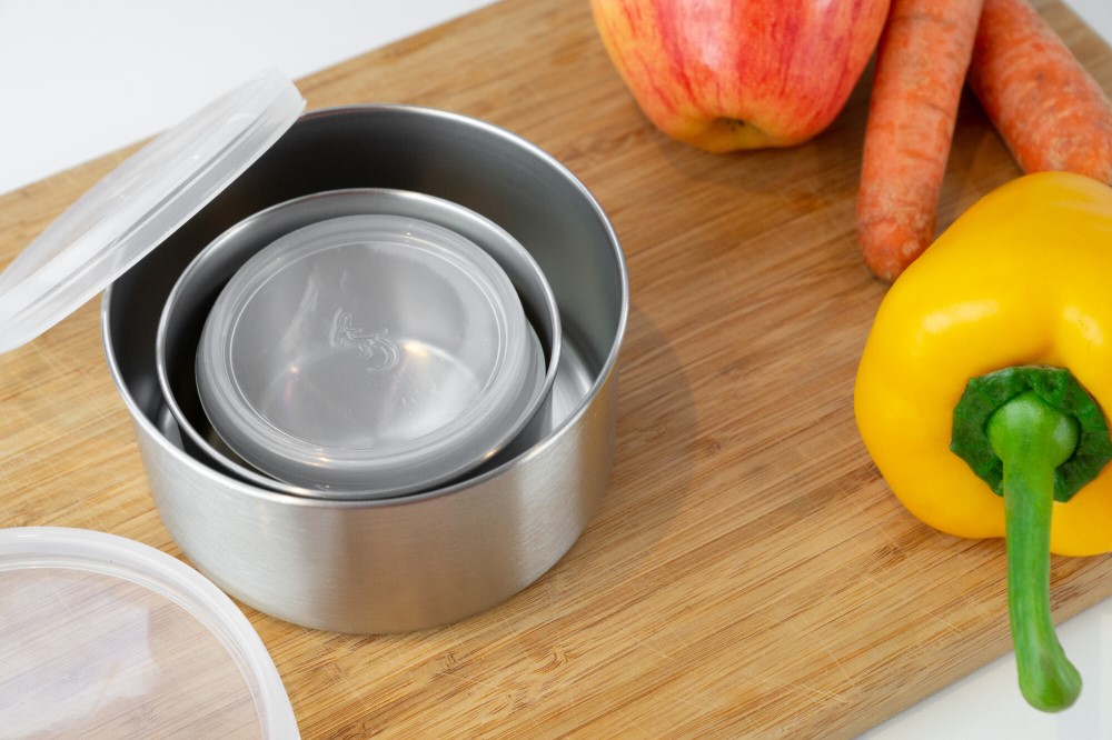 Mini-Dosen EDS 3er Set mit Silikondeckel Luftdicht, auslaufsicher, stapelbar, Spühlmachinegeeignet