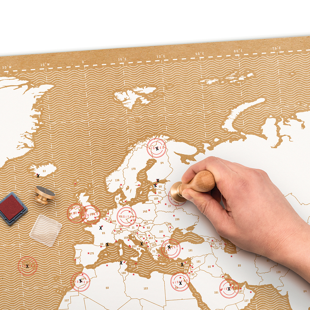 Die SCRATCH MAP STAMP ist grossartig! Diese Weltkarte eignet sich perfekt dafür, um mit seinen Reisen ein wenig anzugeben. Und ausserdem frischt es dekorativ Ihre Wand auf.
