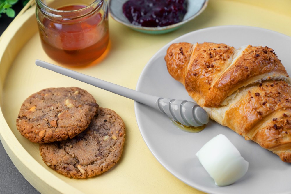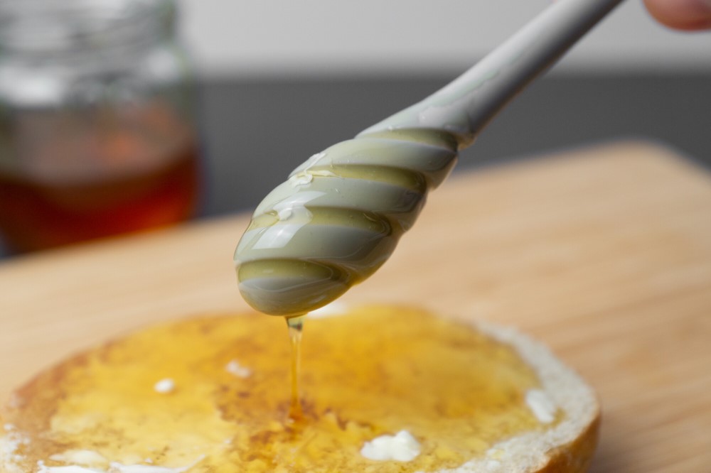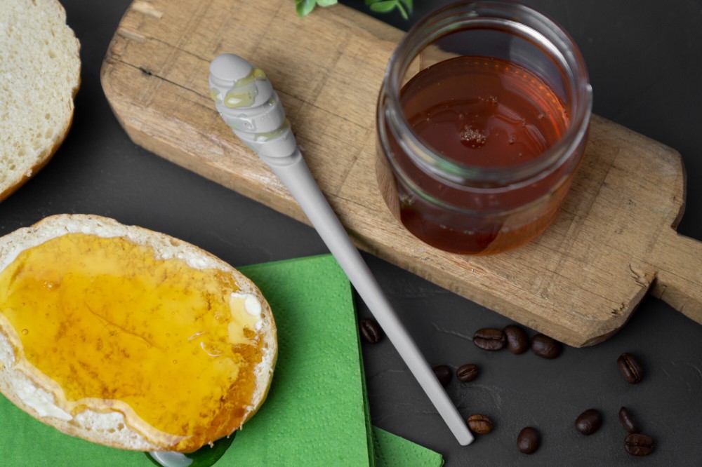 Honiglöffel Silikon light grey Spiralform zur sauberen Aufnahme