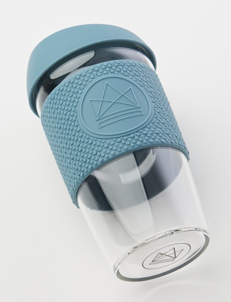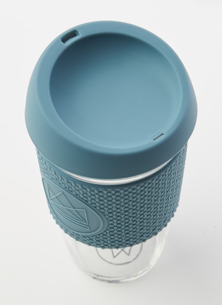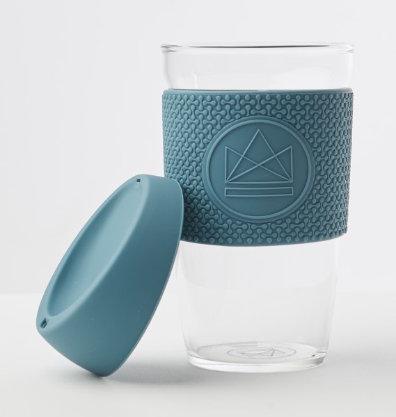 Reusable Glass Cup - Wiederverwendbare Glasbecher Super Sonic, blau, 450ml, Borosilicatglas, BPA-frei, komplett rezyklierbar