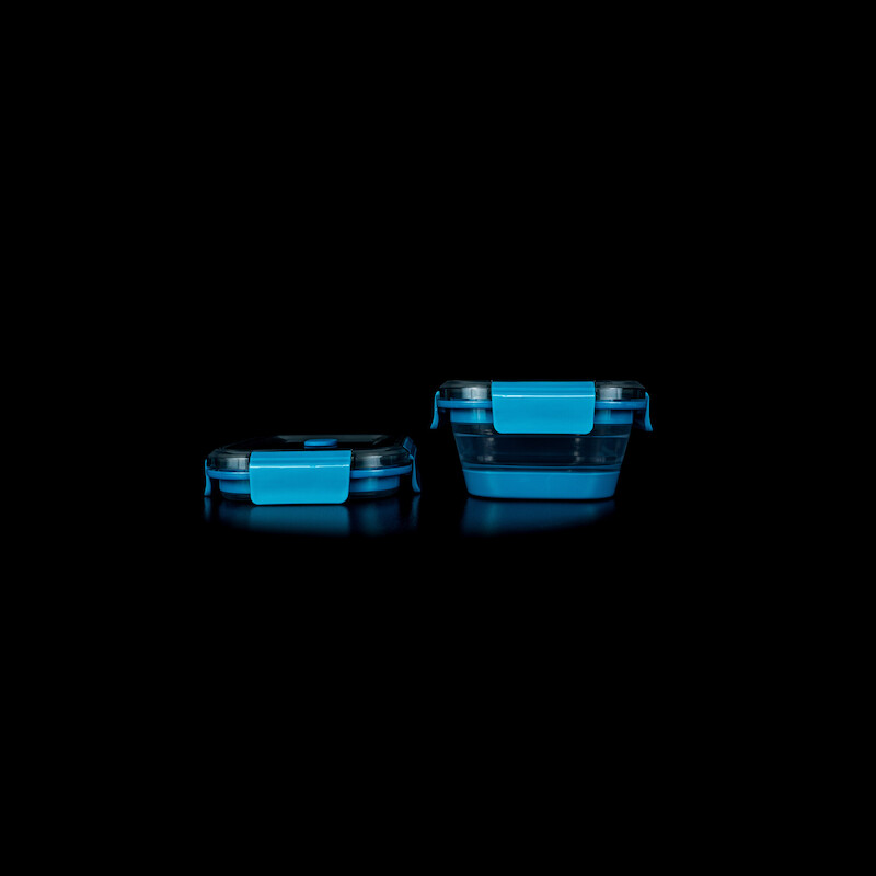 Dank des faltbaren Silikons und der Flexibilität finden die Boxen in jedem Kühl- und Küchenschrank Platz. Der feste Boden aus Kunststoff bietet zudem eine hohe Stabilität. Durch die vier Clips können die Boxen luftdicht verschlossen werden und sind so 100% auslaufsicher. So kannst du die Boxen auch als Transportbox nutzen!