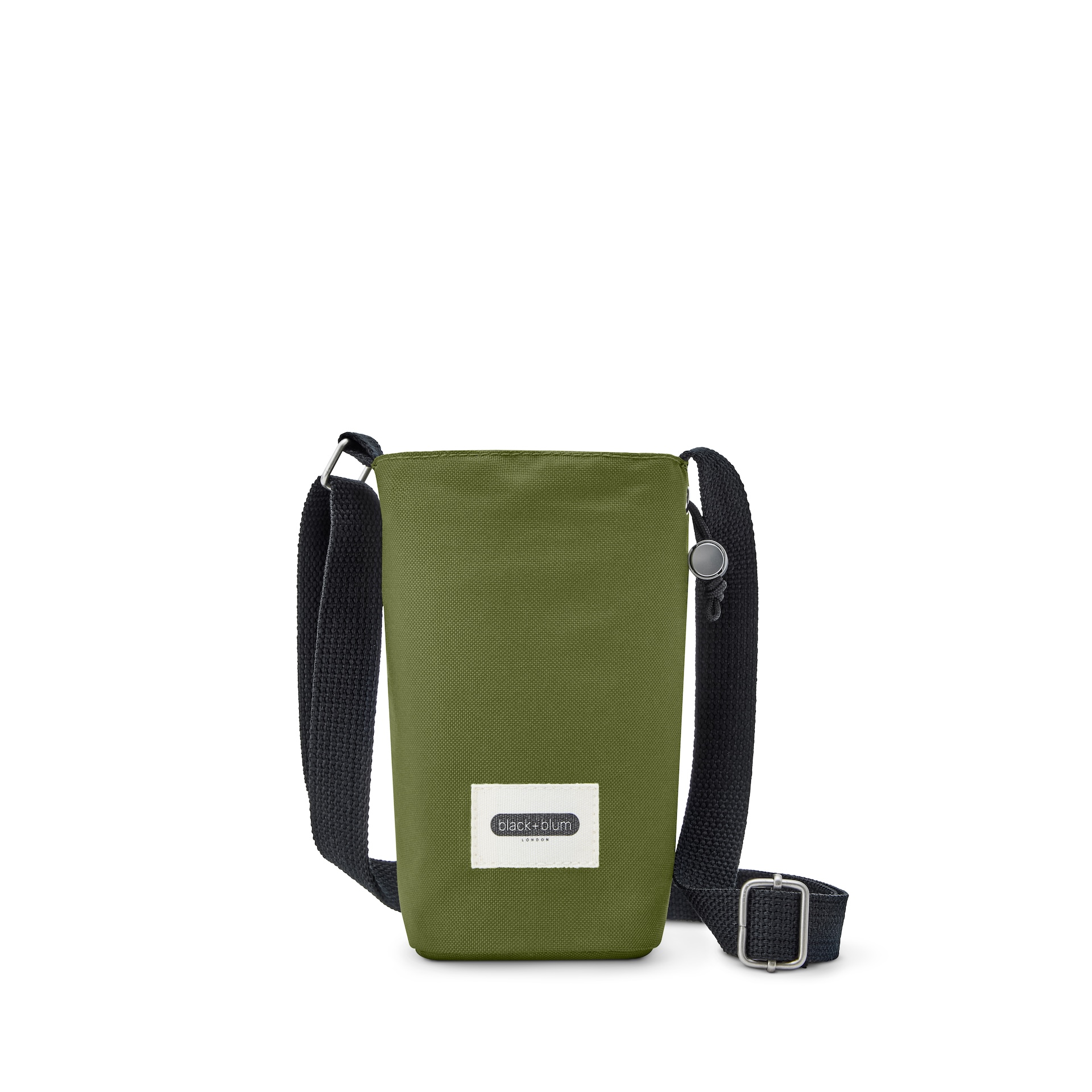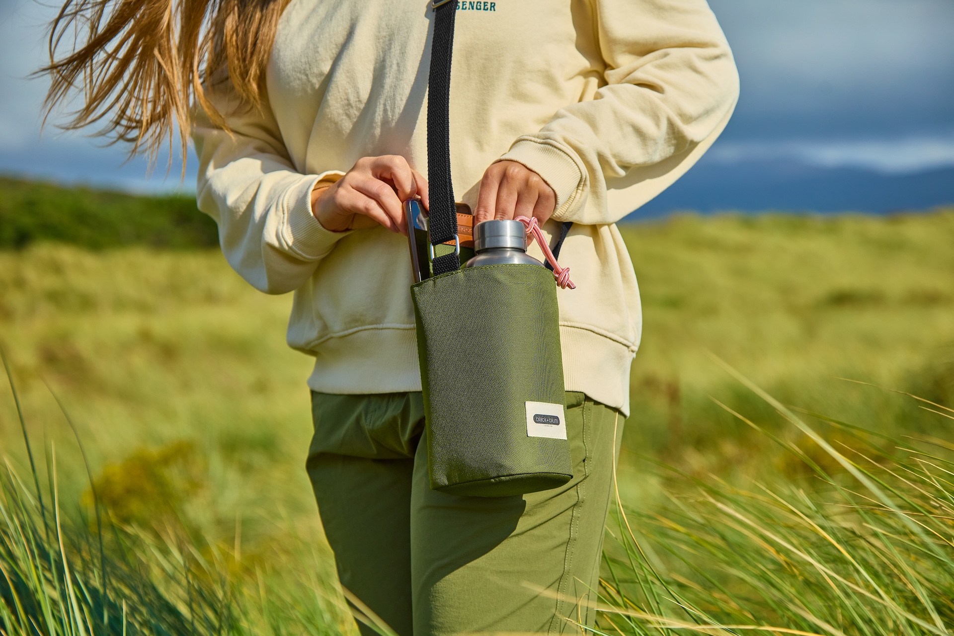 Insulated Bottle Bag - Isolierter Flaschenkühler moosgrün, Tragetasche für extra grosse Flaschen, isoliert, aus recycelten PET, mit Schultergurt