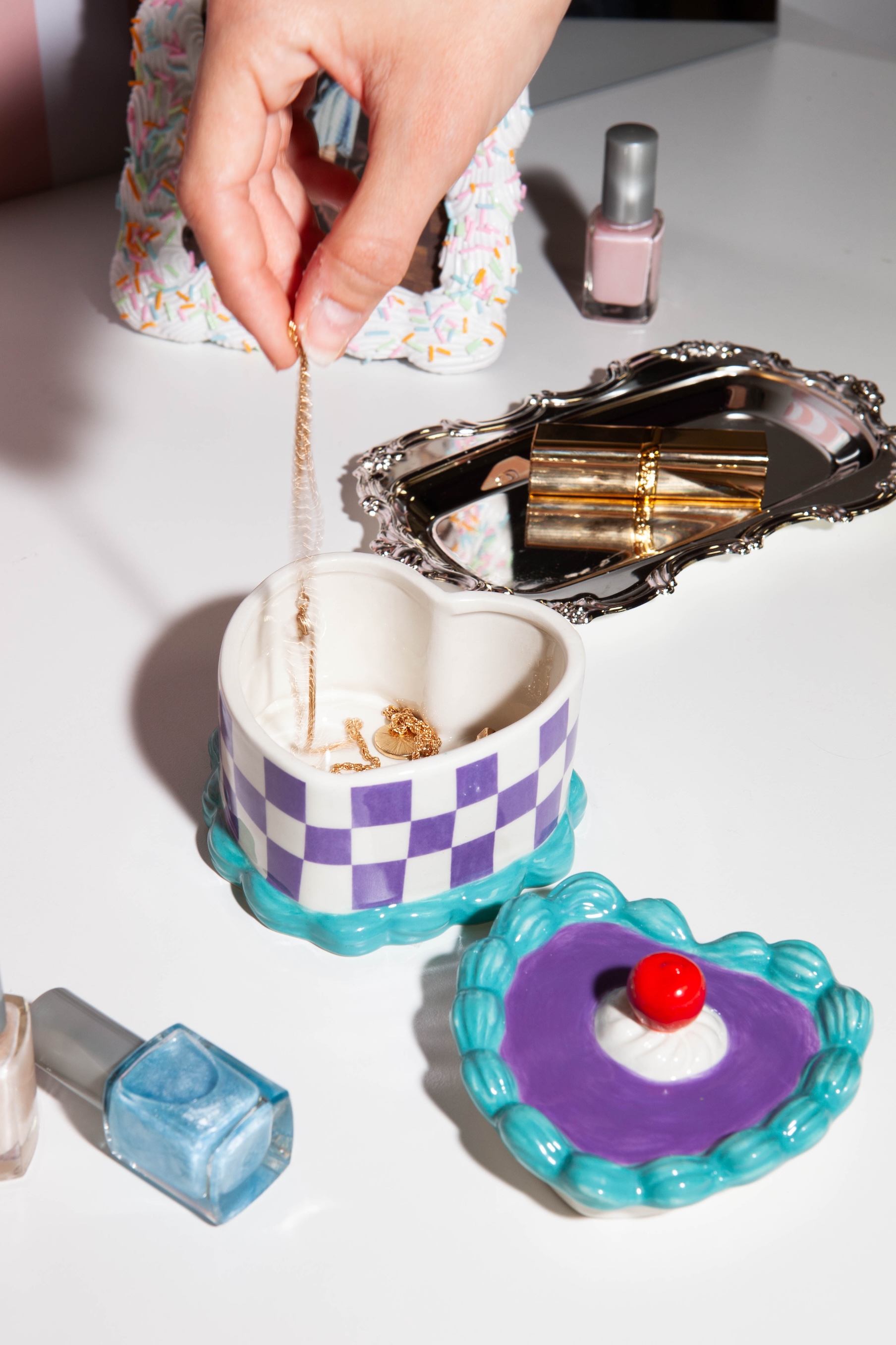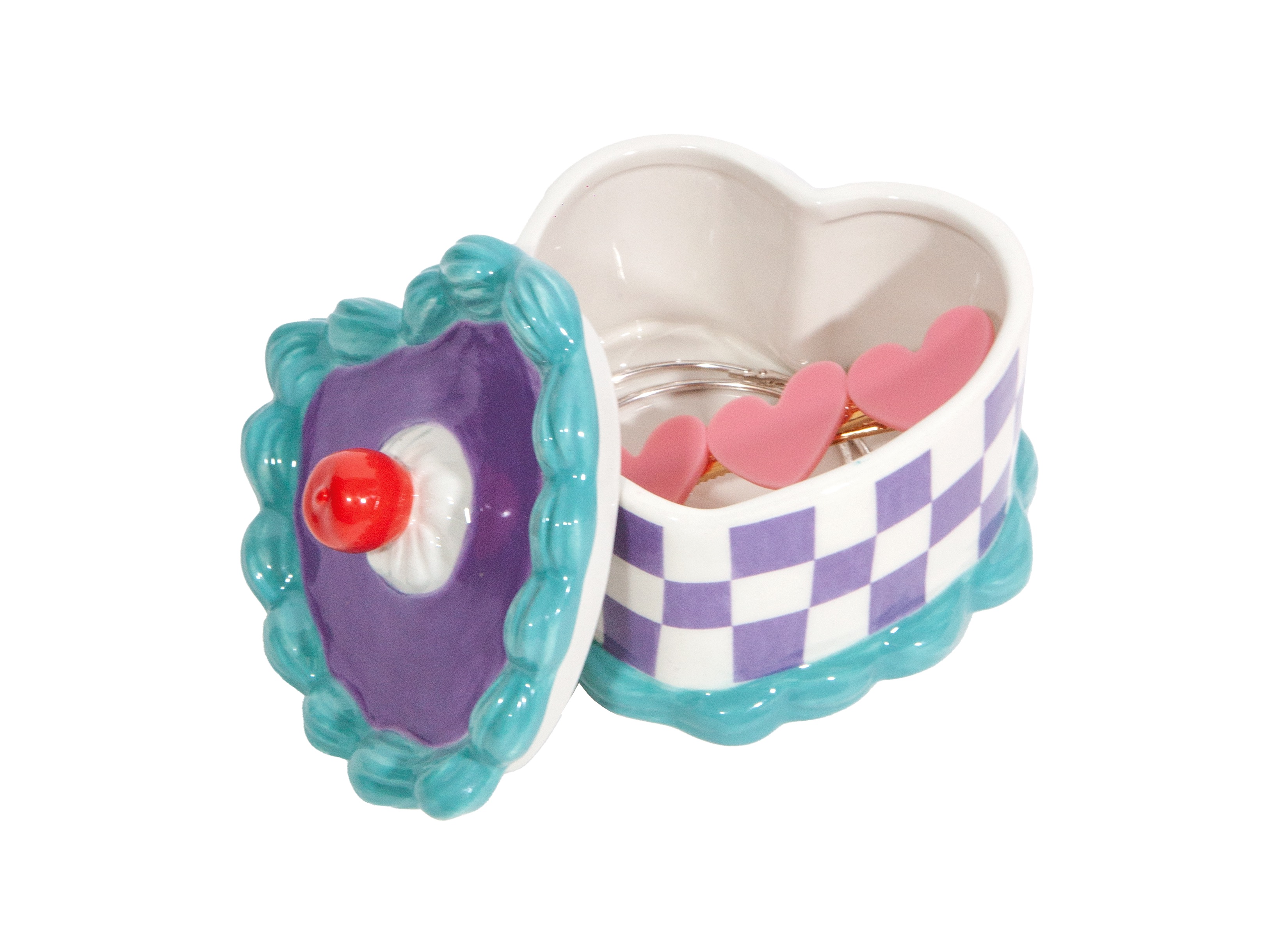 Sweetie Heart Cake Storage Box - Boîte de rangement lila-blaue Dose in Herzkuchen-Form, Keramik, zur Aufbewahrung von div. Kleinen Sachen oder Esswaren