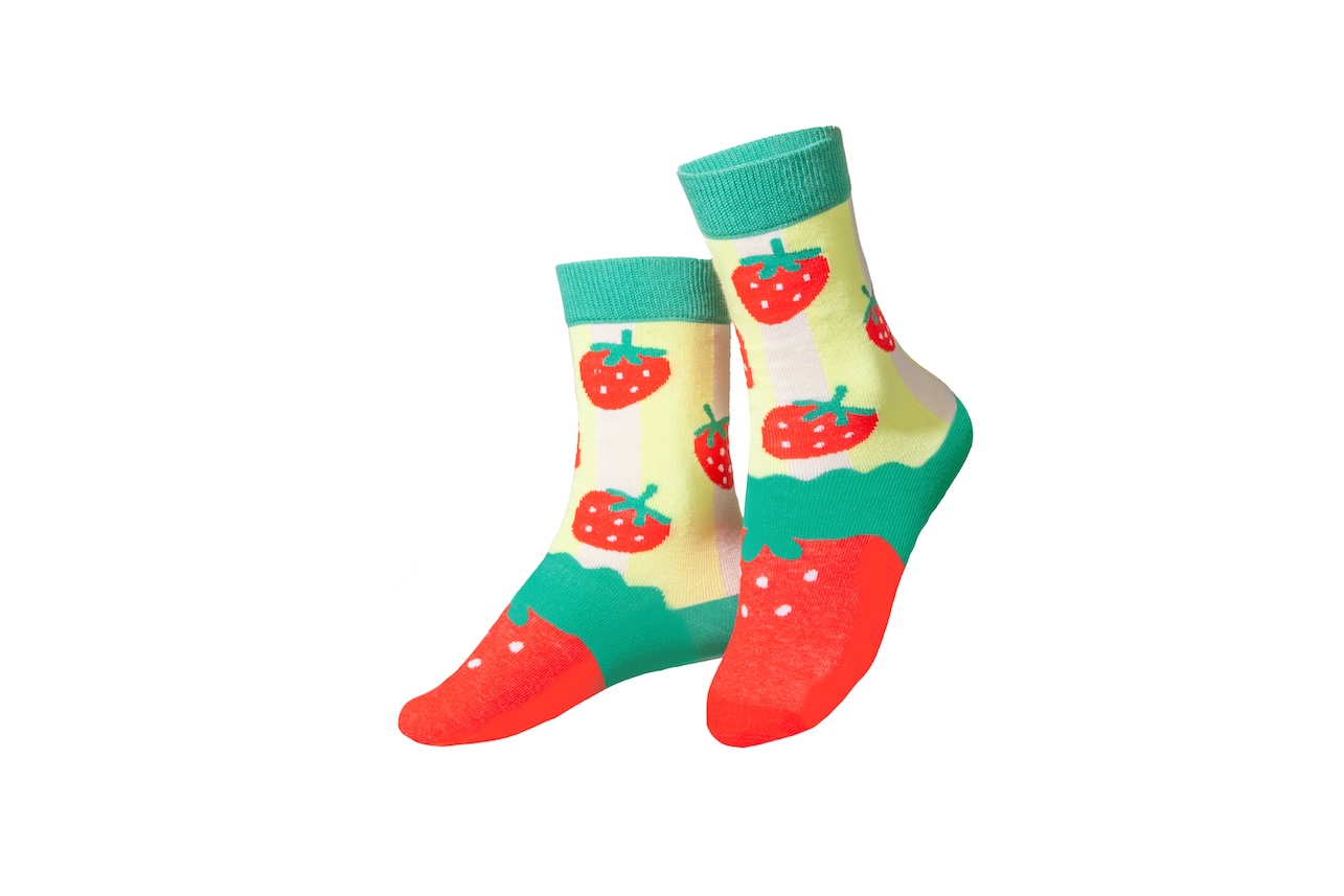 Berry Bites Kids - Socken rot-grün, 1 Paar unisex Kinder-Socken, 5 - 10 Jahre / Verp. Papier, biobas. Laminerung, PET Bag