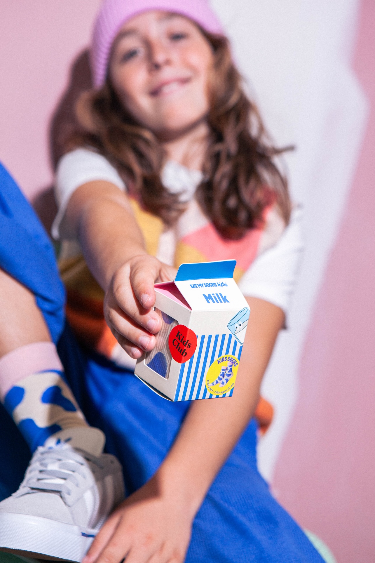 Milk, Kids - Socken blau-rosa, 1 Paar unisex Kinder-Socken, 5 - 10 Jahre / Verp. Papier, biobas. Laminerung, PET Bag