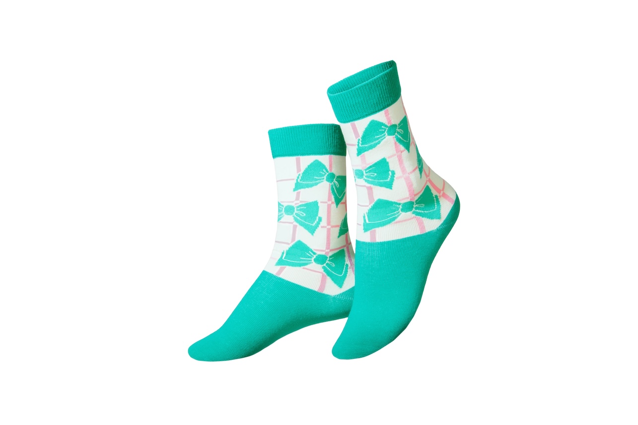 Tauchen Sie mit unseren bezaubernden Socken in Form einer Schleife ein in die ätherische Welt des Balletts und in die wunderlichen Reize der Koketterie.
