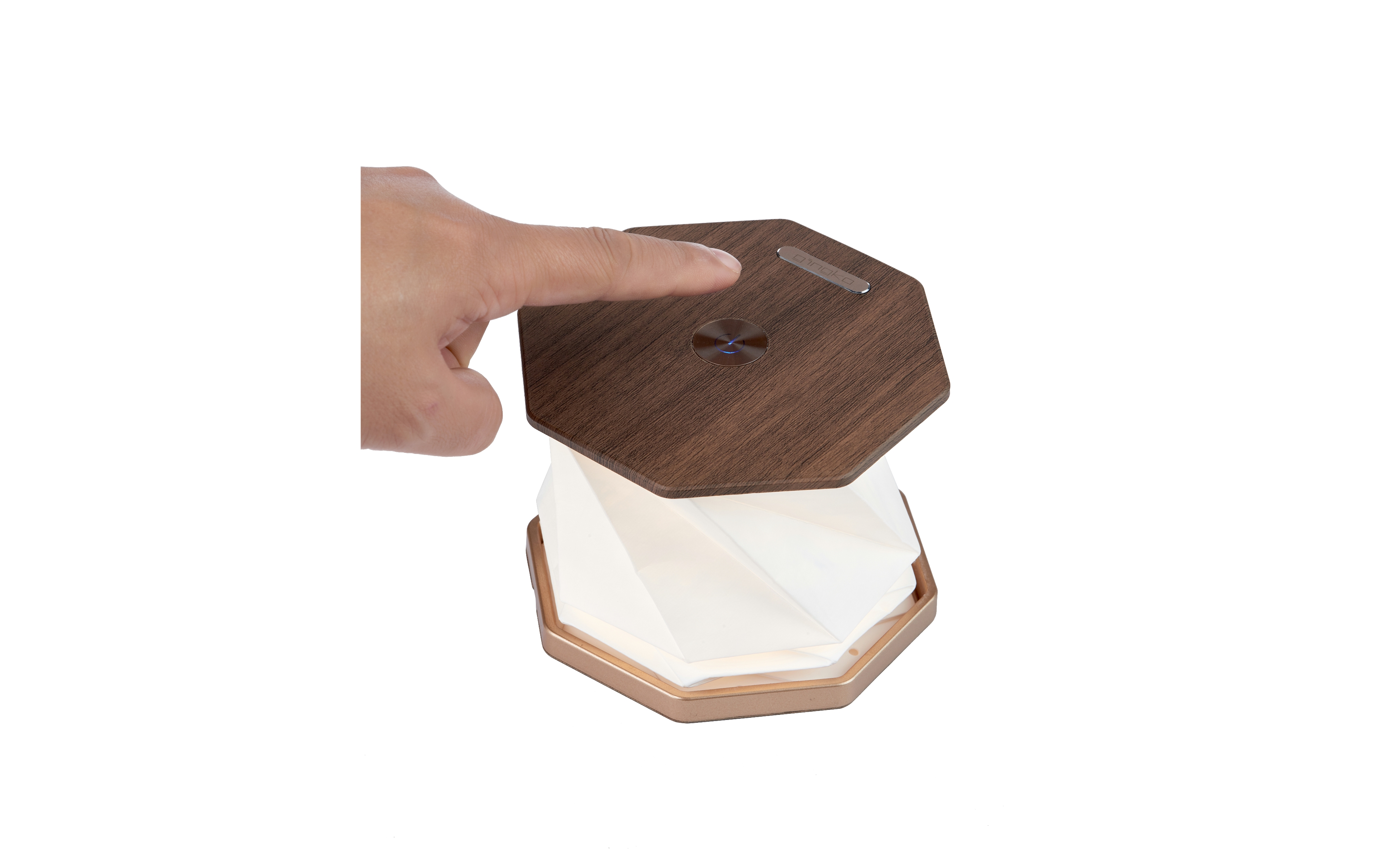 Twist Hexagon Lamp - Athmosphären-Licht Nussbaum, dimmbares Licht, Touch-Funktion, Akku bis 15 h