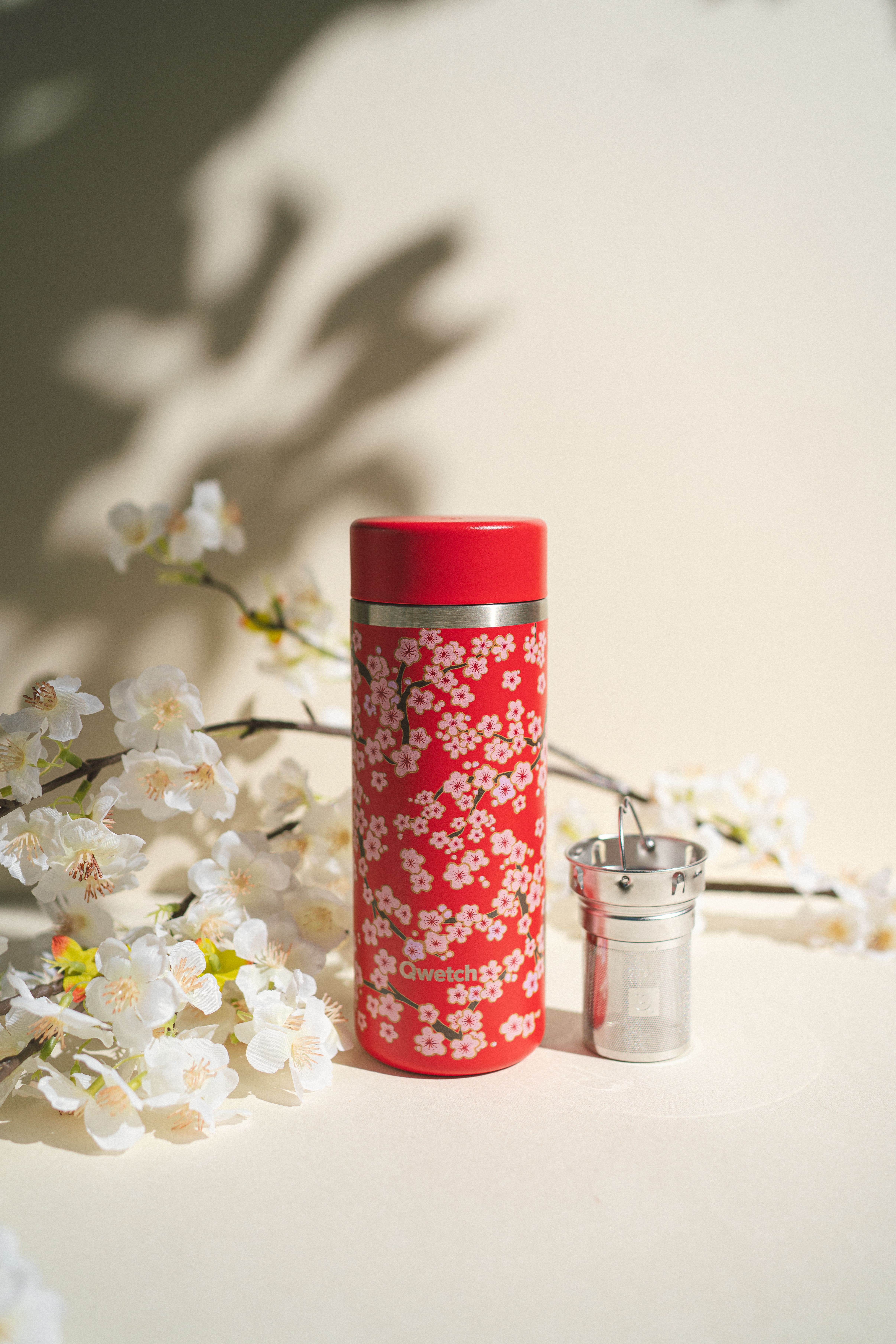 Insulated Teapot - Isolierte Teeflasche Aus recyceltem Edelstahl - Flowers - Rot - 400 ml