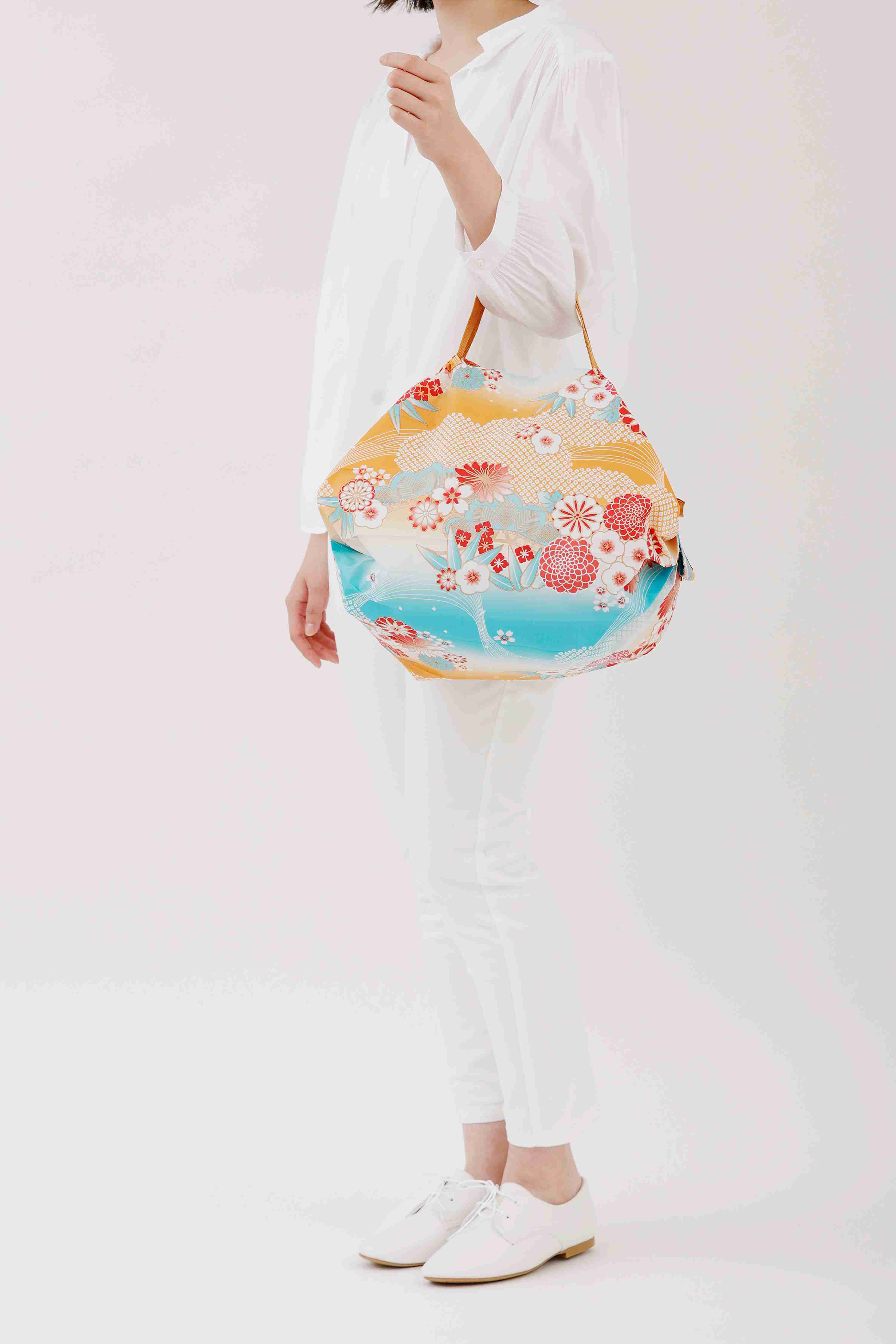 Compact Bag M - NAGARE GUMO - Faltbare Einkaufstasche One-Pull (patentiert) NAGARE GUMO - Japanisches Traditionsmotiv "Fliessende Wolken", Grösse M - gefaltet 8x6 cm, 15 l