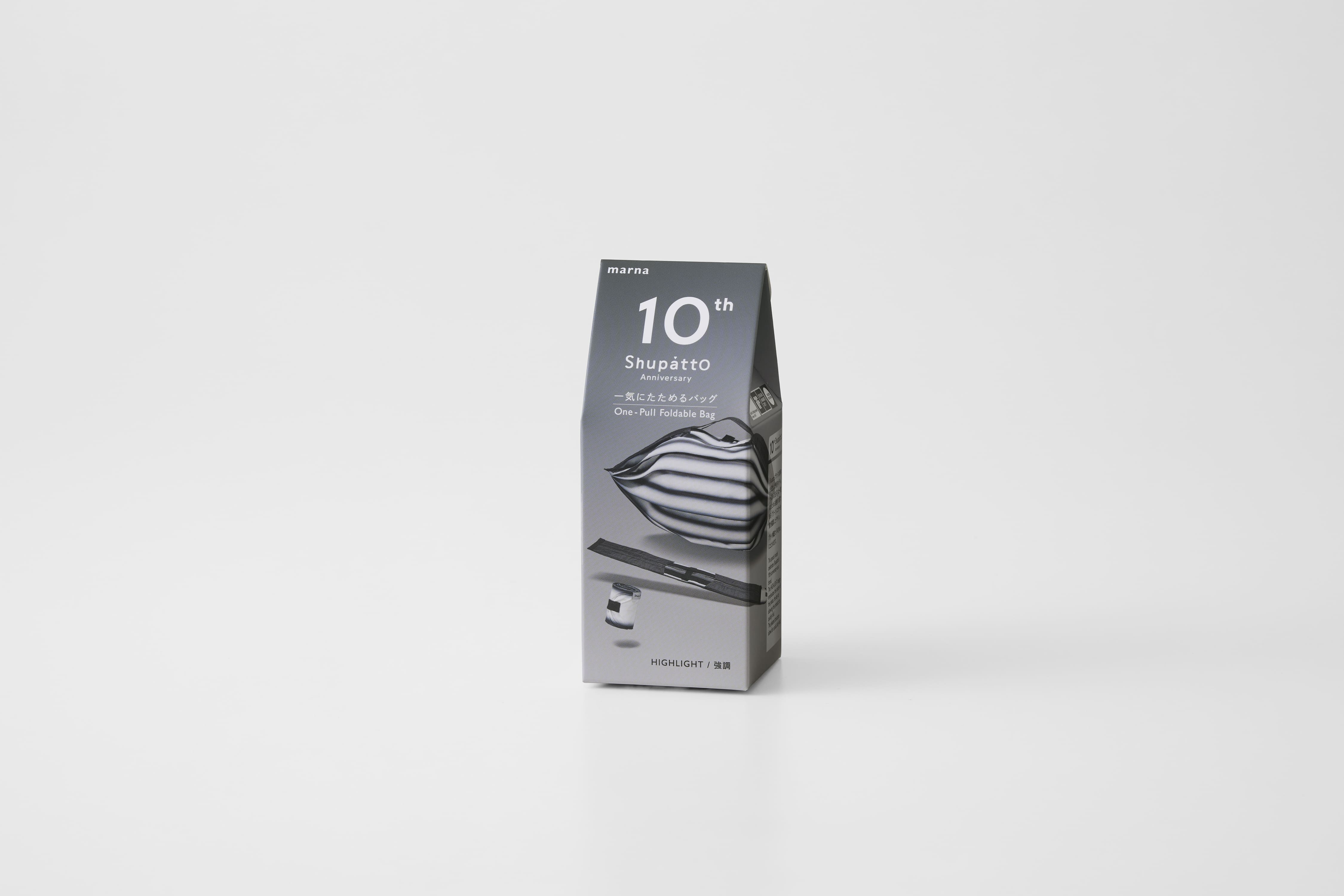 Compact Bag M, "10th Anniversary" Highlight schwarz - Faltbare Tasche One-Pull (patentiert) Highlight (schwarz), Mehrfarbig, Grösse M - gefaltet 8x6 cm, 15 l