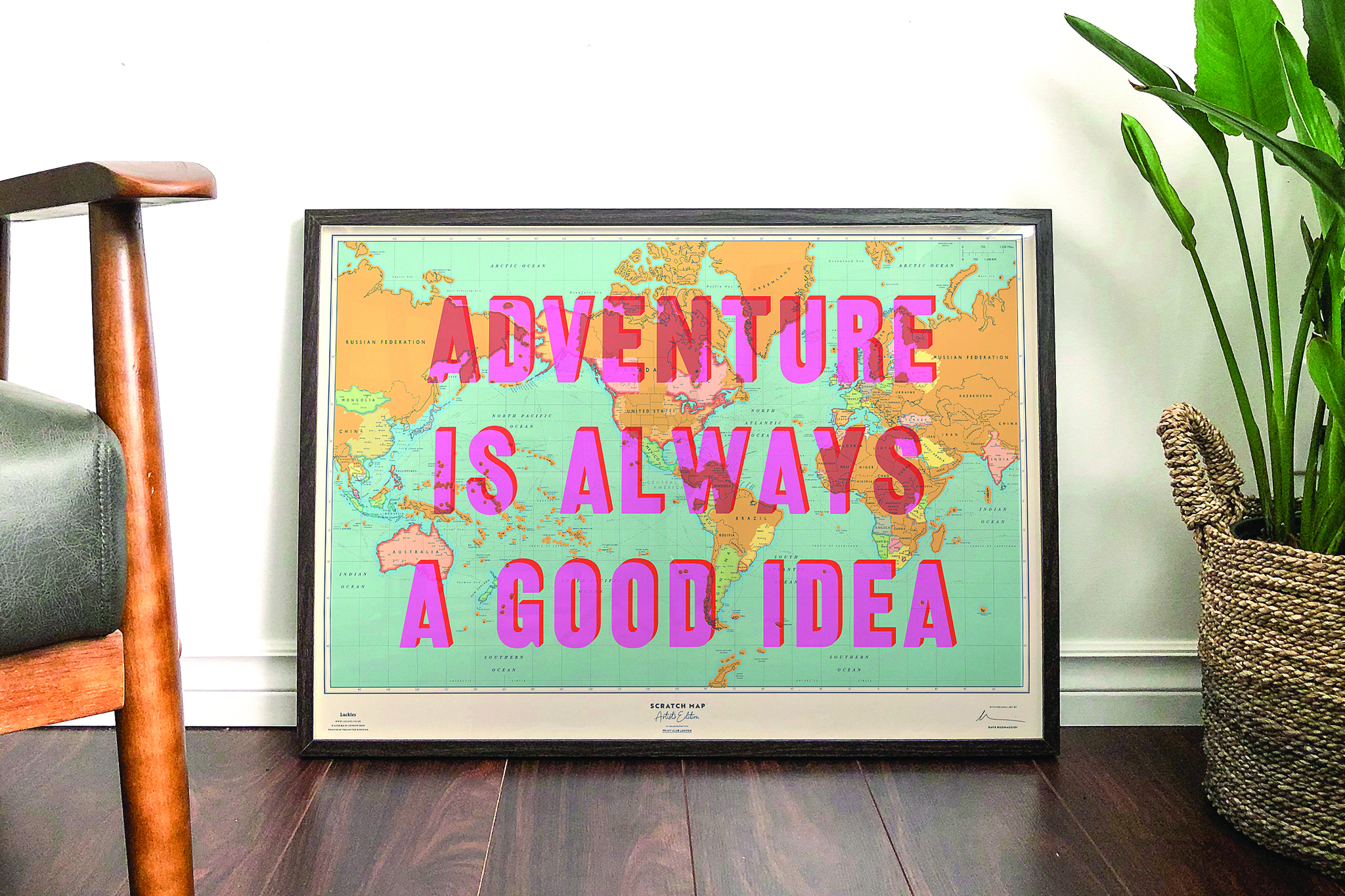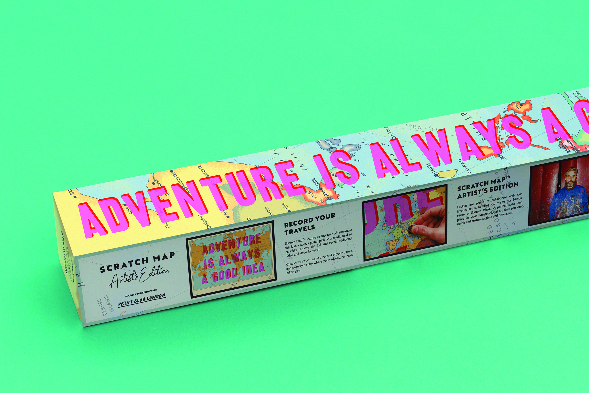 Scratch Map - Weltkarte zum Rubbeln Kollaboration mit Print Club, Artist's Edition mit Dave Buonaguioi. Made in UK