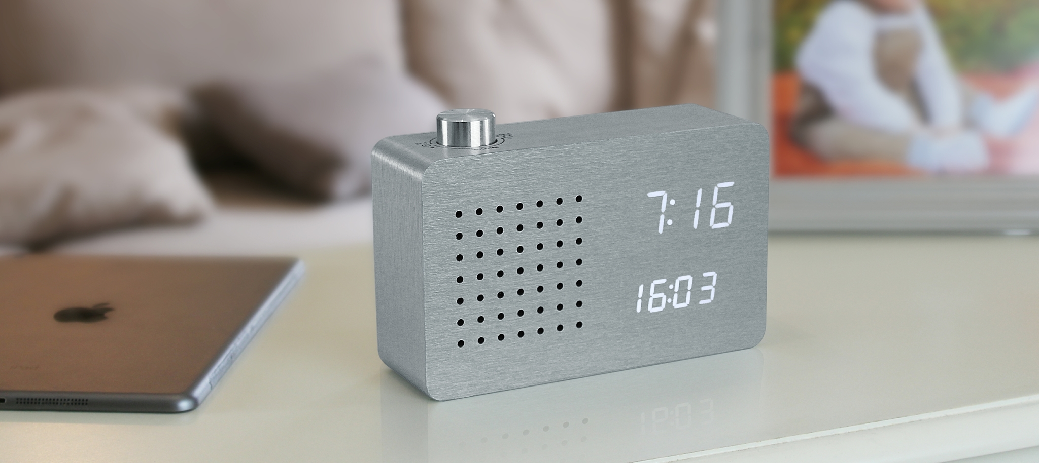 Radio Click Clock - Wecker Aluminium, LED weiss