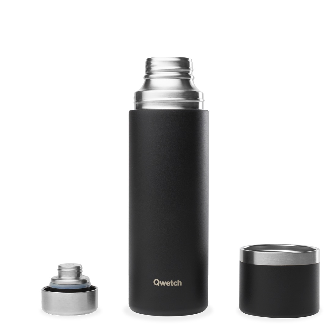 Thermo inox isotherme - Isolier-Flasche mit Becher Matt-Black, 750ml, mit Trinkbecher, aus rezikliertem Edelstahl