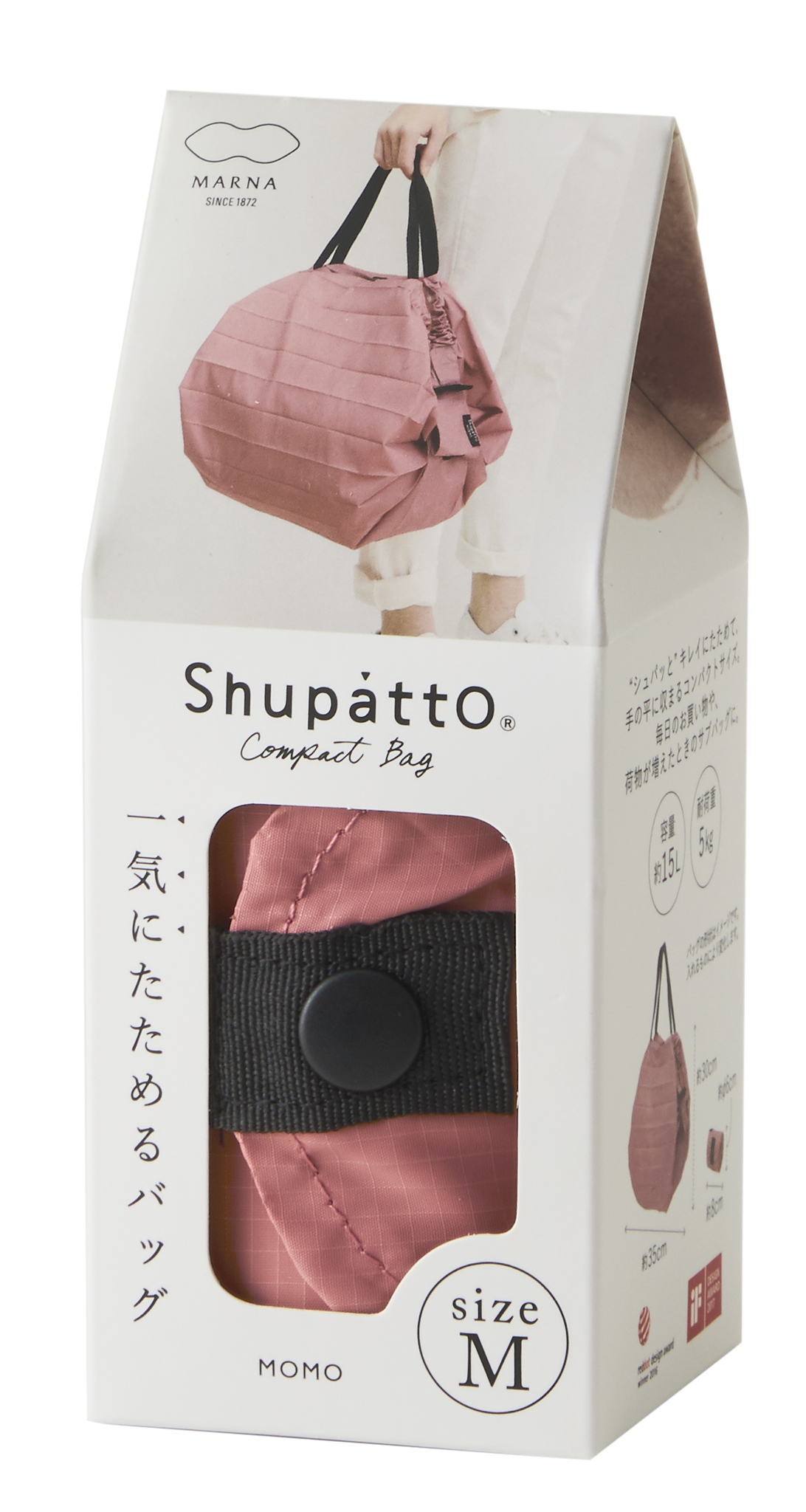 Compact Bag M - MOMO - Faltbare Einkaufstasche One-Pull (patentiert) MOMO (Peach), Rosa, Grösse M - gefaltet 8x6 cm, 15 l