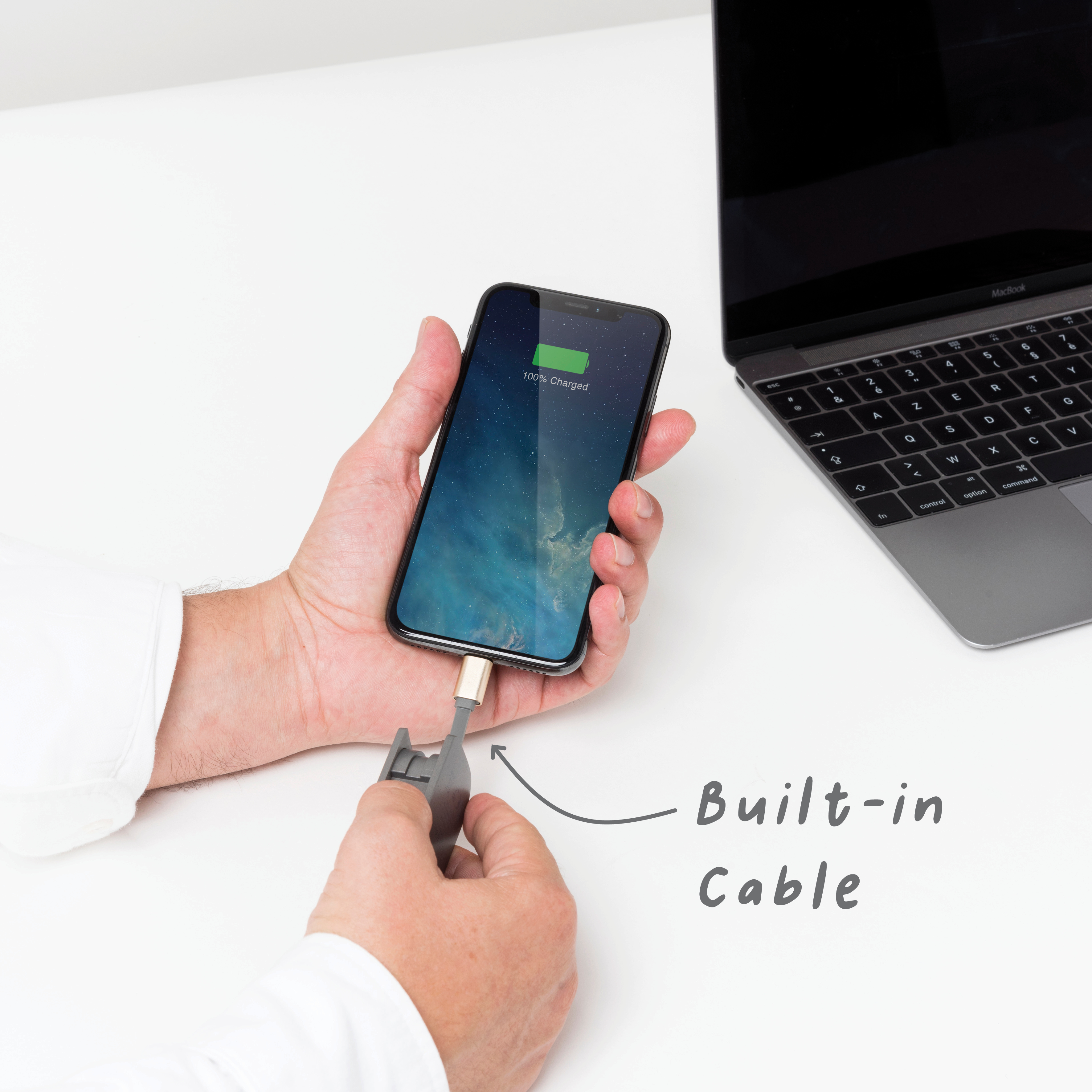Eingebautes Kabel zum Aufladen Ihres Telefons.